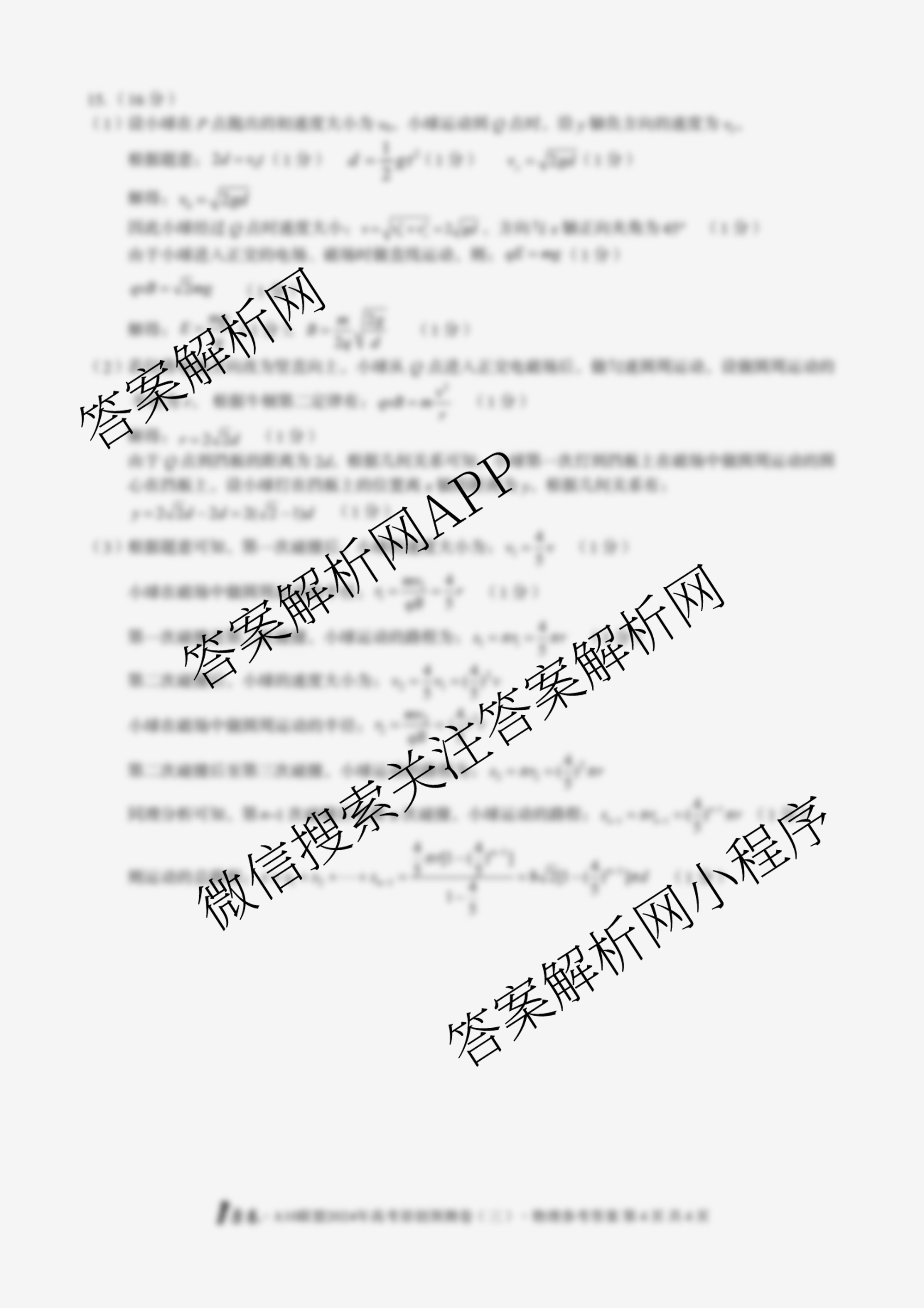 - (高三)(1号卷)·A10联盟2024年高考原创预测卷(三)物理答案