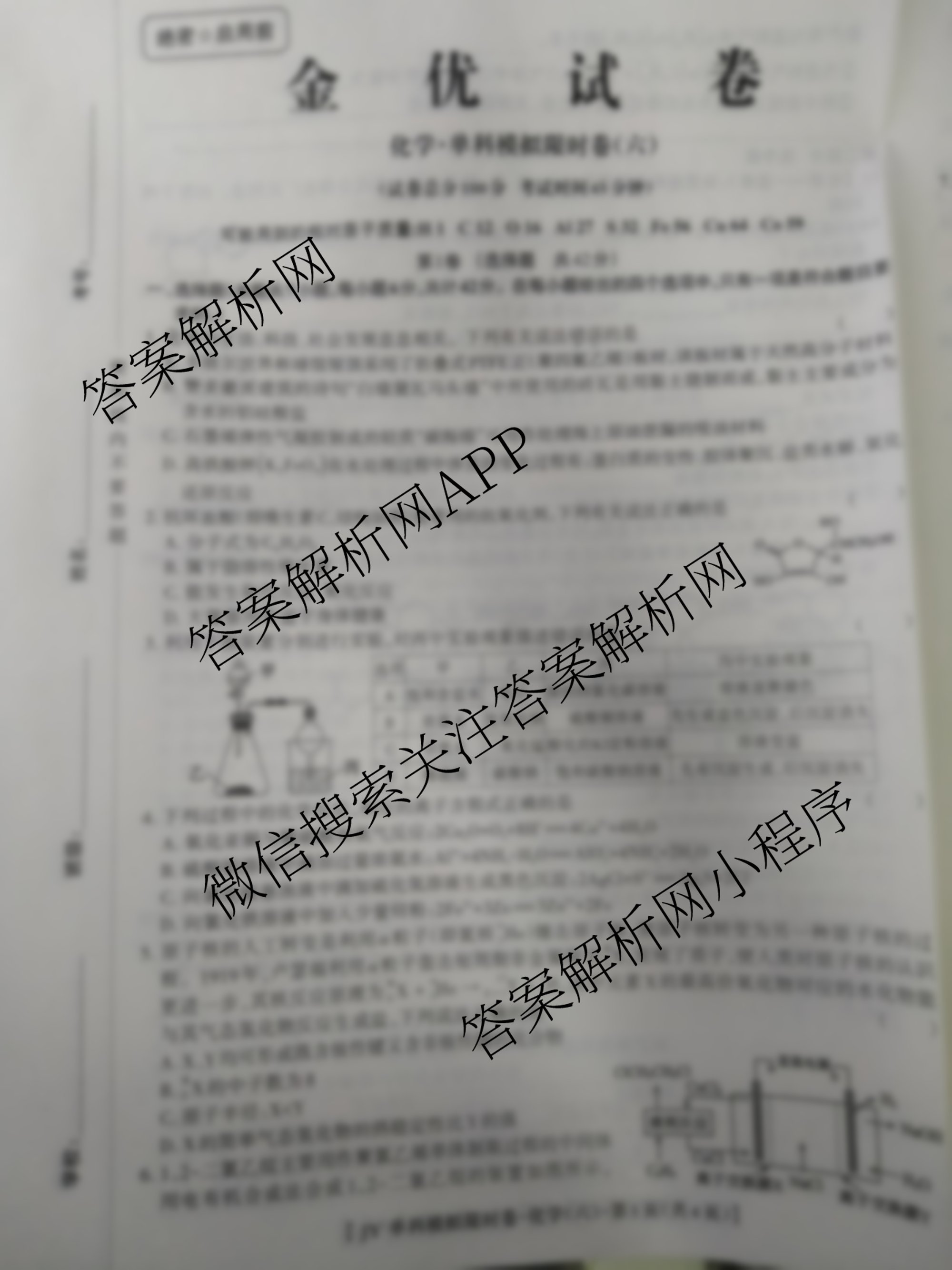2024届高三JY金优单科模拟限时卷化学(六)6试题