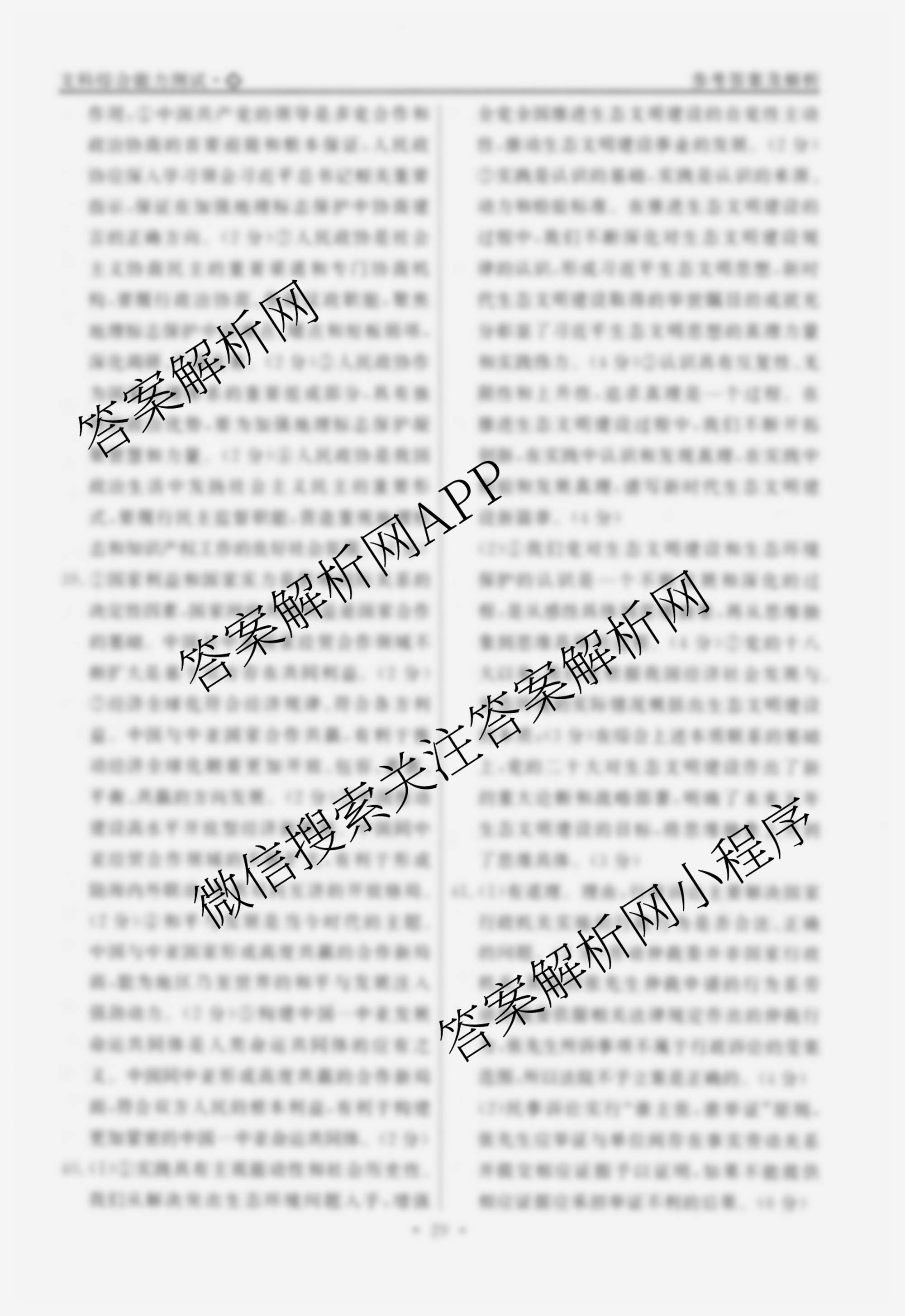 (衡水名师卷)高考模拟调研卷 2024年普通高等学校招生全国统一考试模拟试题 文综(空心◇)(五)5答案