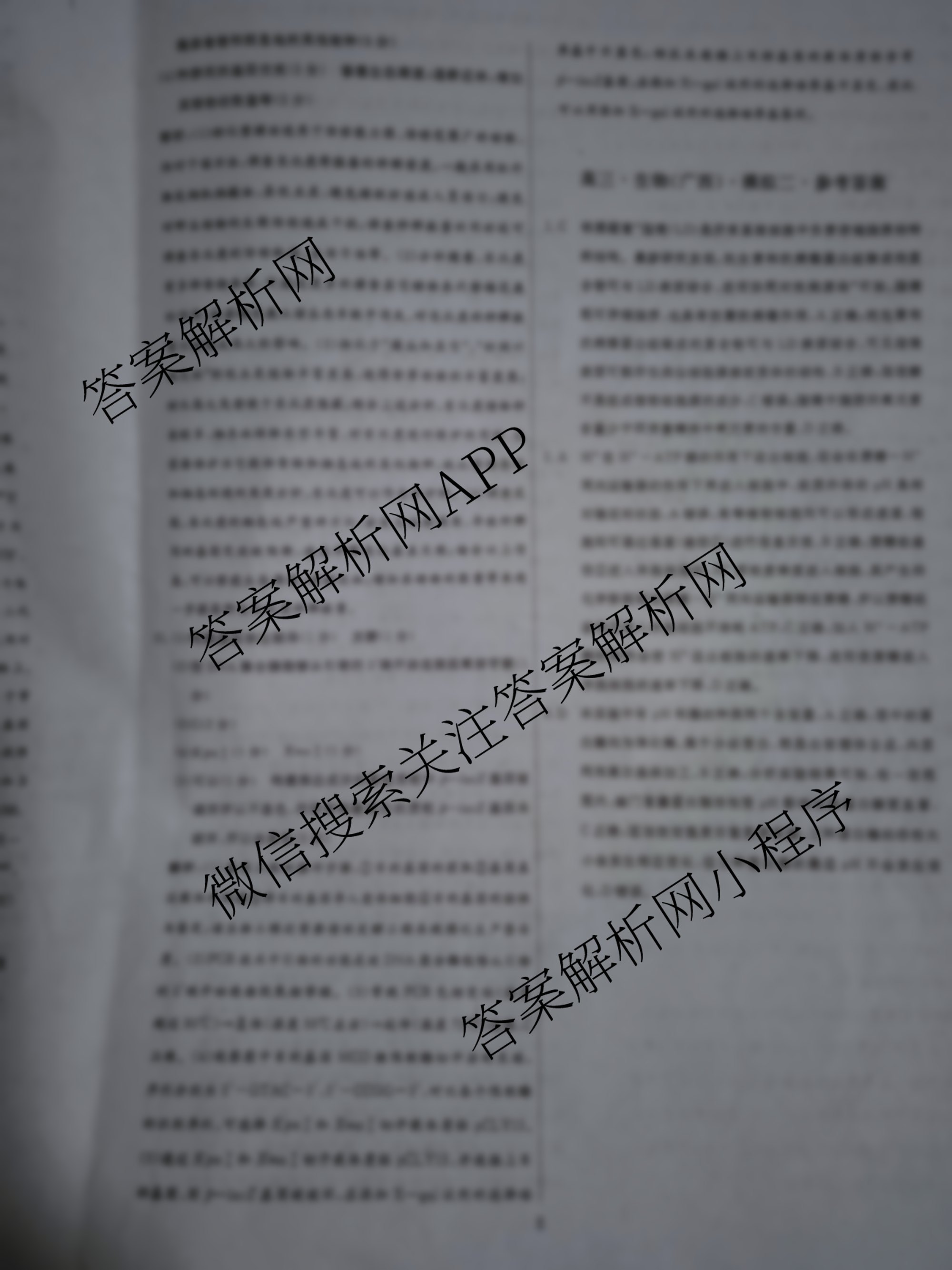 [高三]黄冈八模2024届生物模拟测试卷(广西)(二)2答案