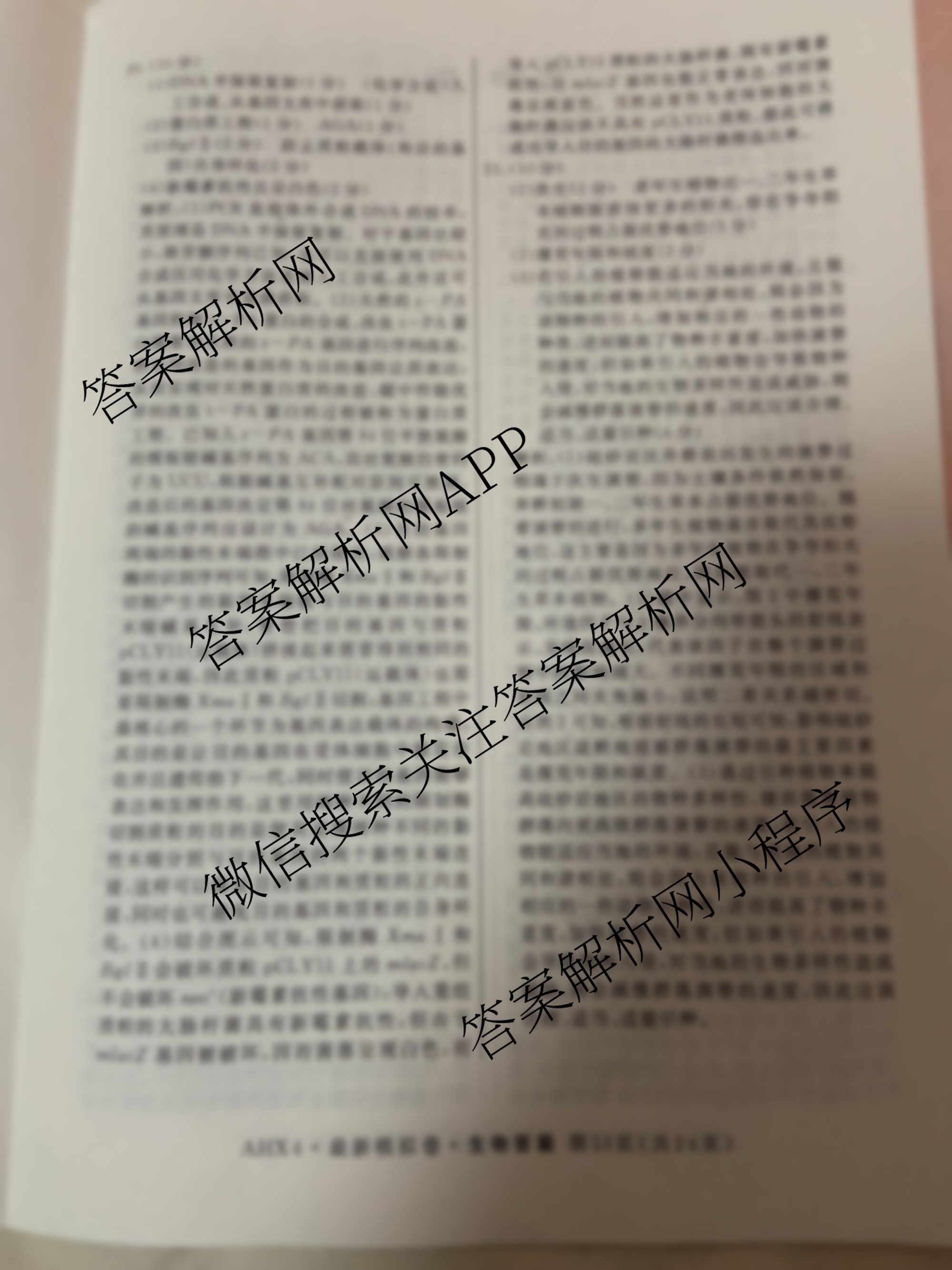 - 2024年普通高等学校招生统一考试最新模拟卷·生物(AH4)(三)3答案