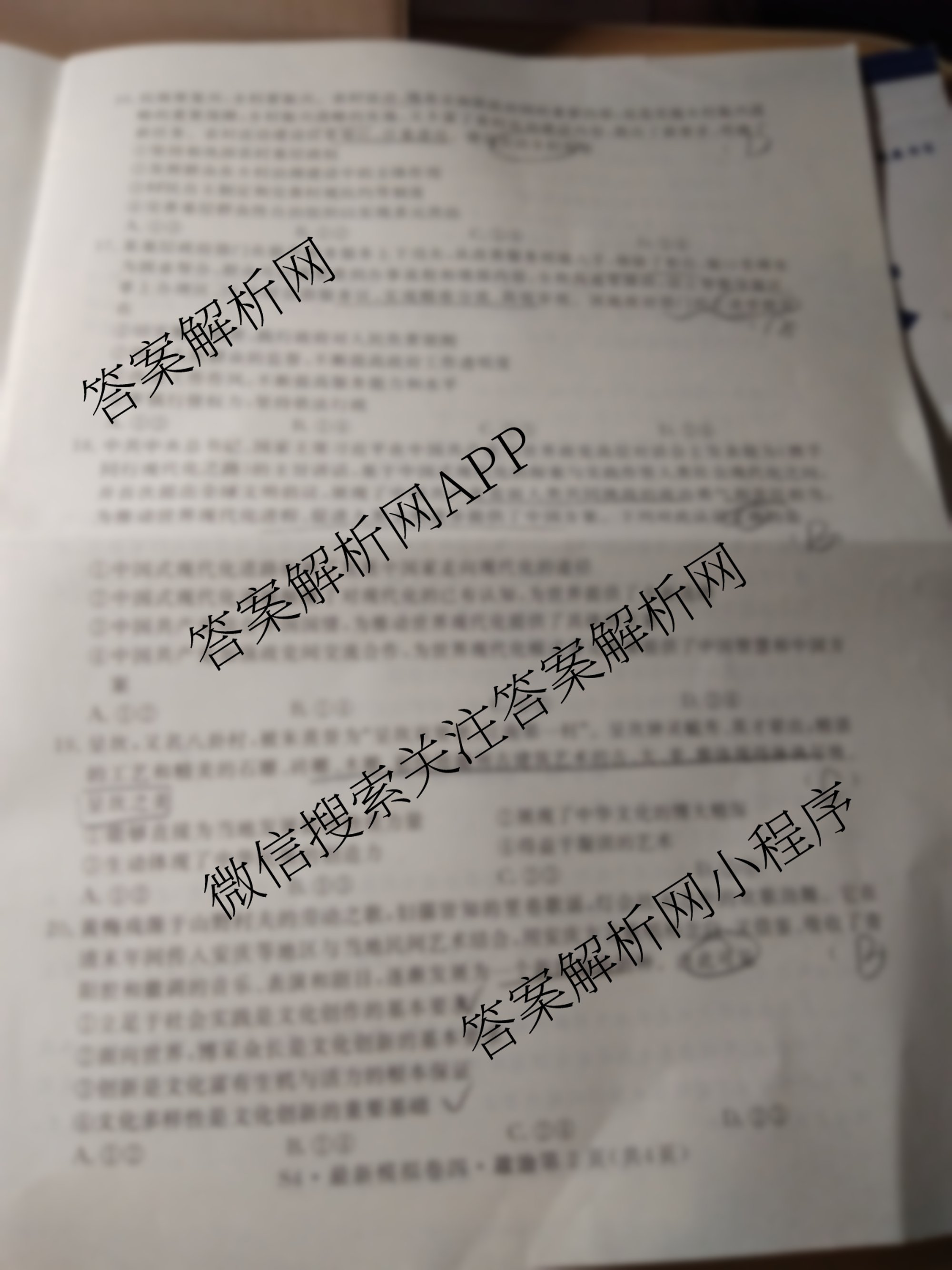 - 2024年普通高等学校招生统一考试最新模拟卷文综(S4)(四)4答案