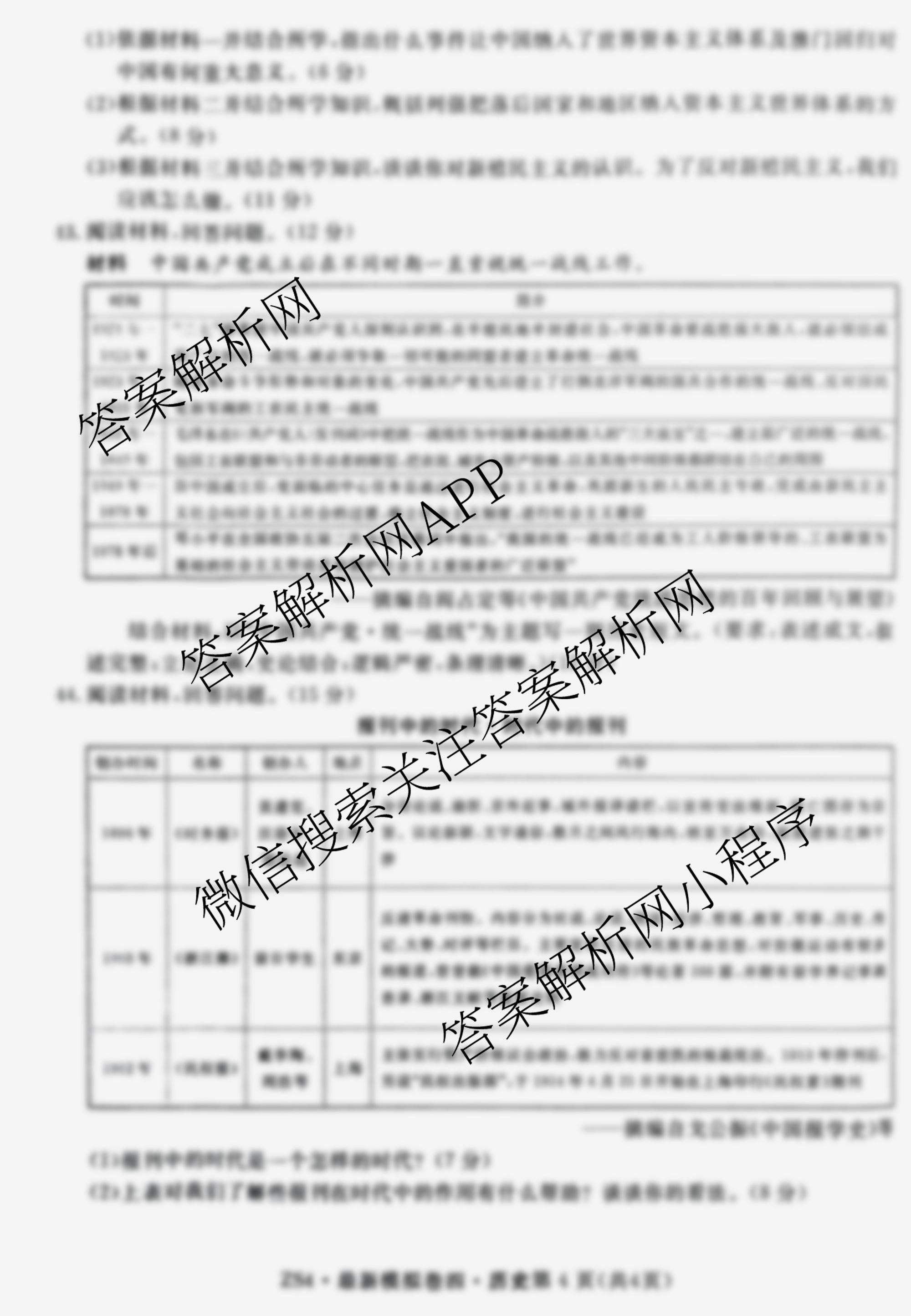 - 2024年普通高等学校招生统一考试最新模拟卷·历史(ZS4)(四)4答案