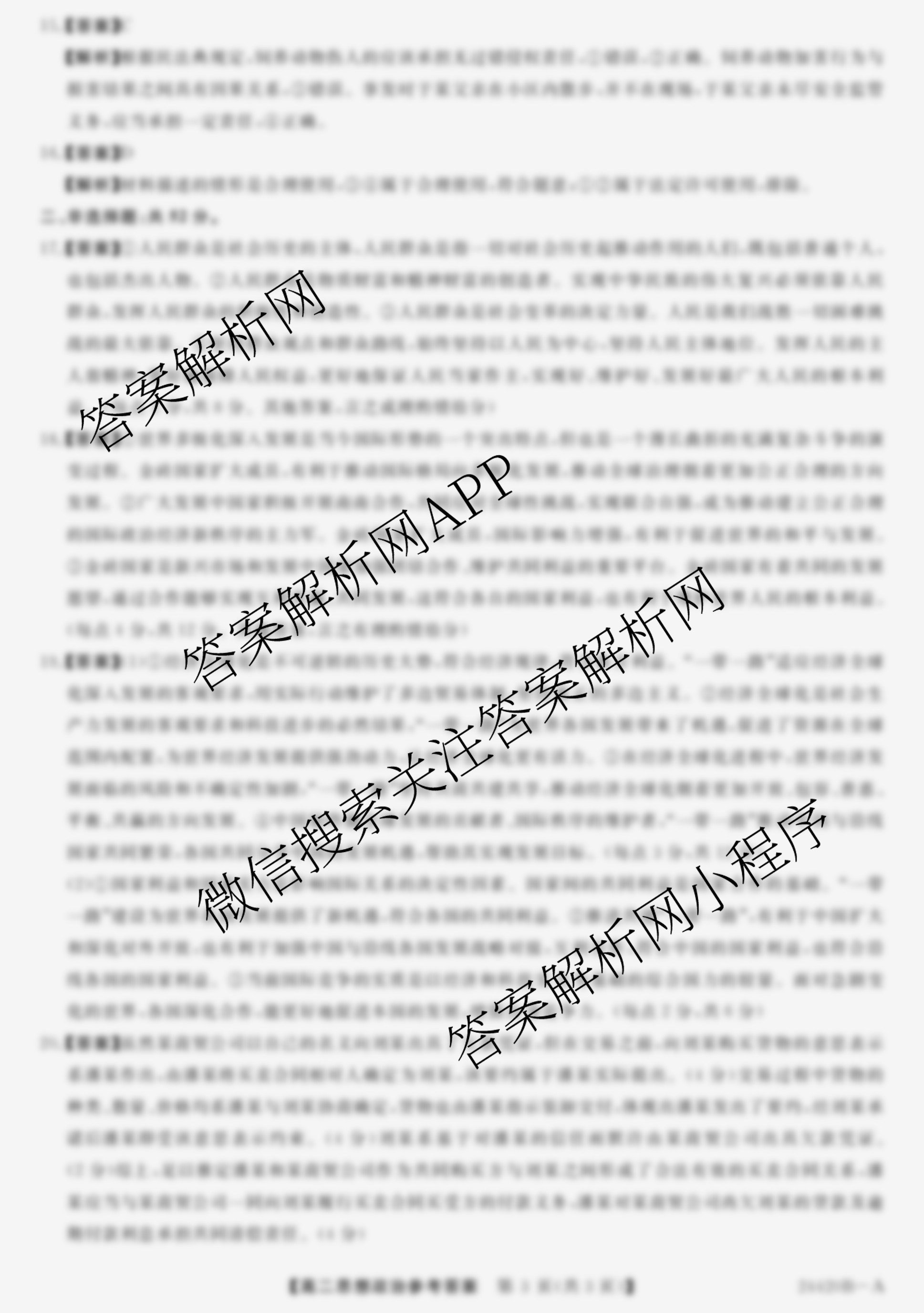 - 2024~2024[高二](金科大联考)·学年度1月质量检测(24420B)政治(A)答案