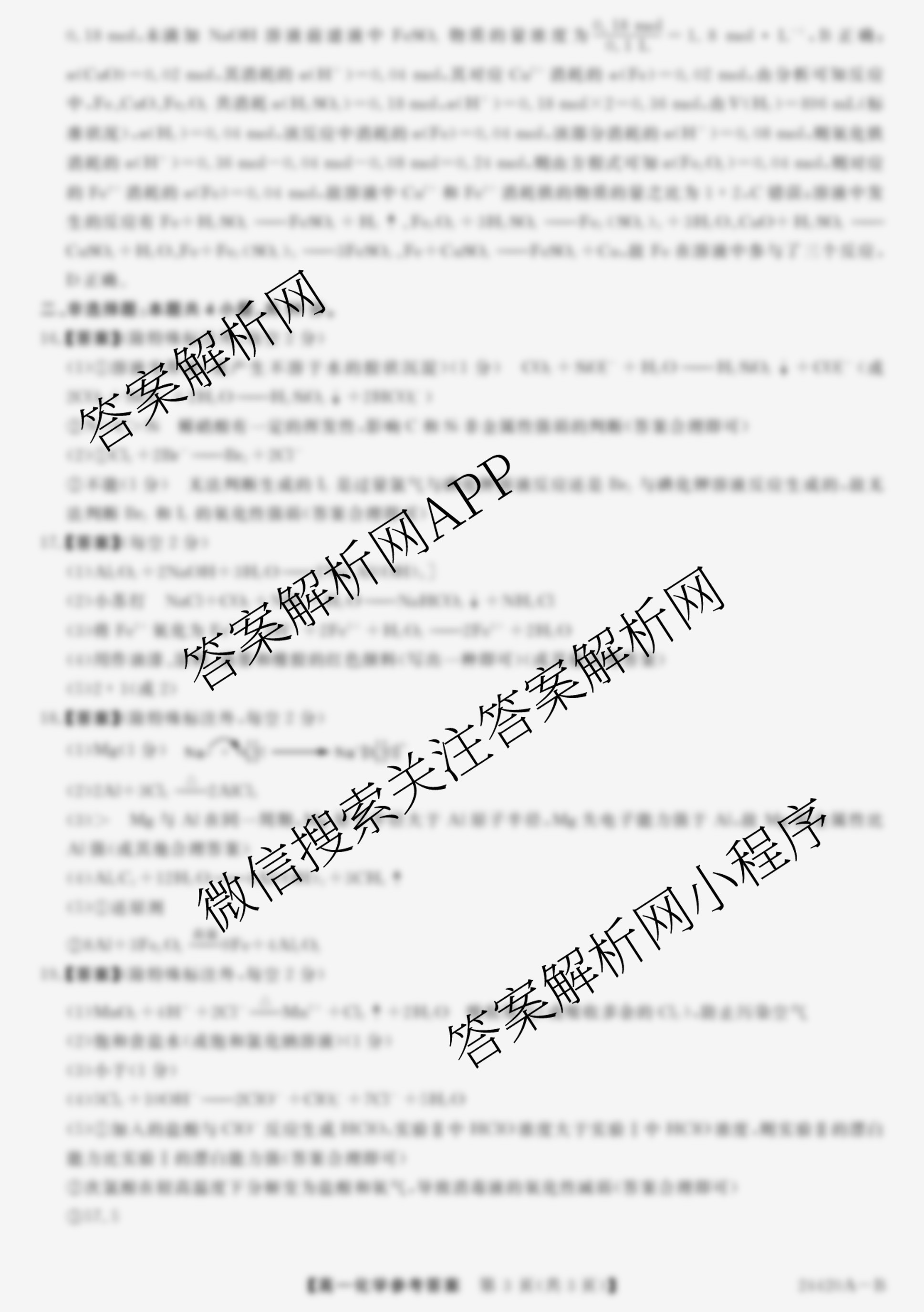- (高一)[金科大联考]·2024~2024学年度1月质量检测(24420A)化学(B)答案