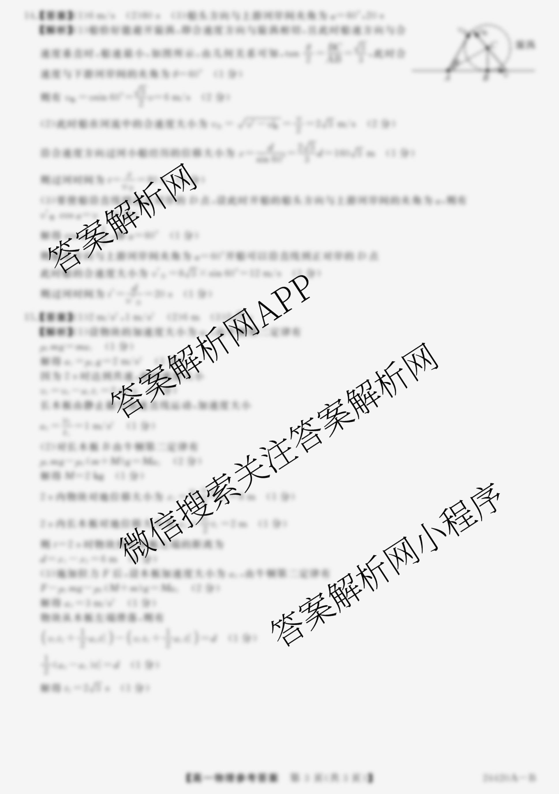 - [金科大联考]2024~2024学年度[高一]1月质量检测(24420A)物理(A)答案