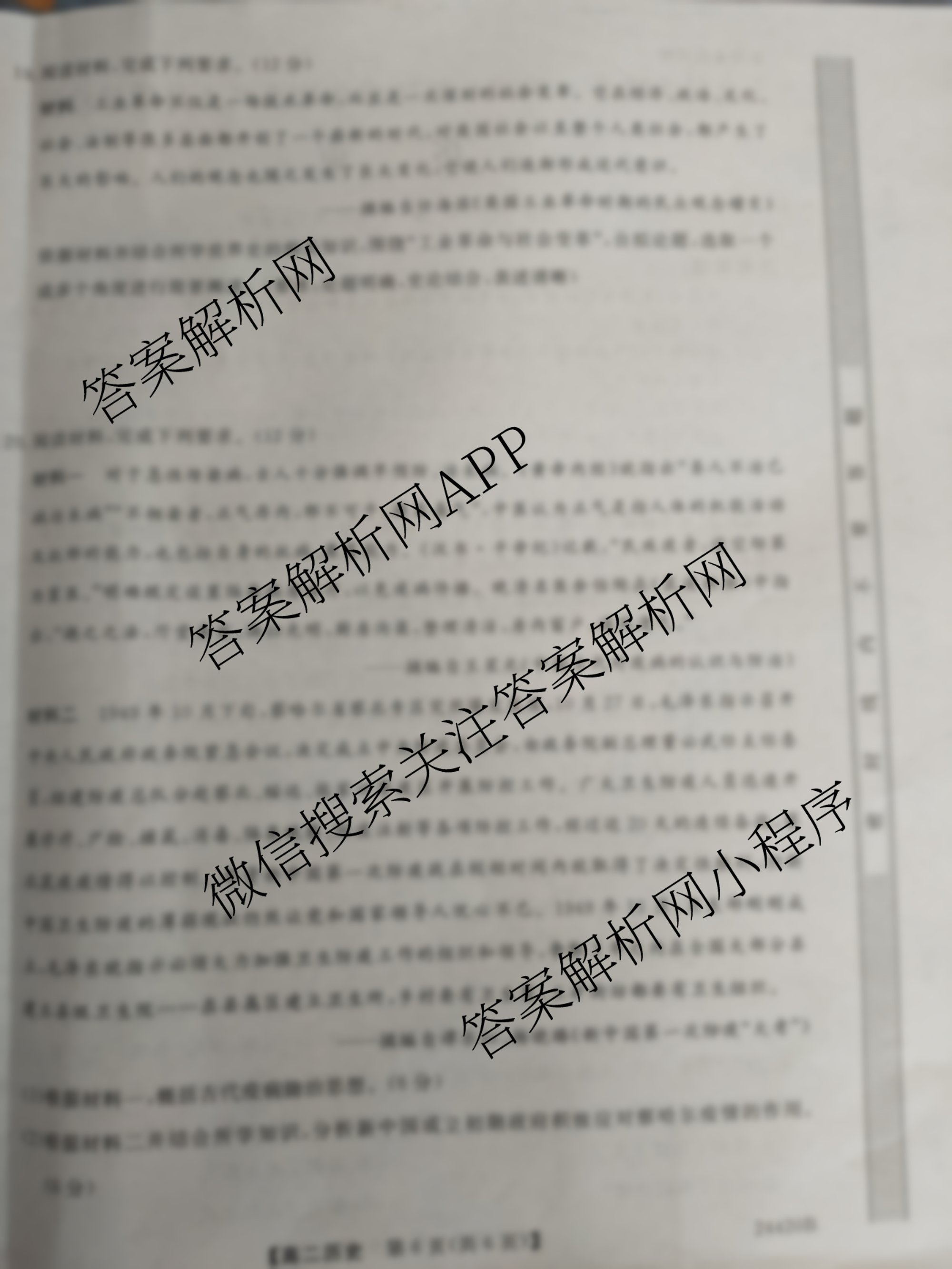 - [高二]金科大联考2024~2024学年度1月质量检测(24420B)历史答案
