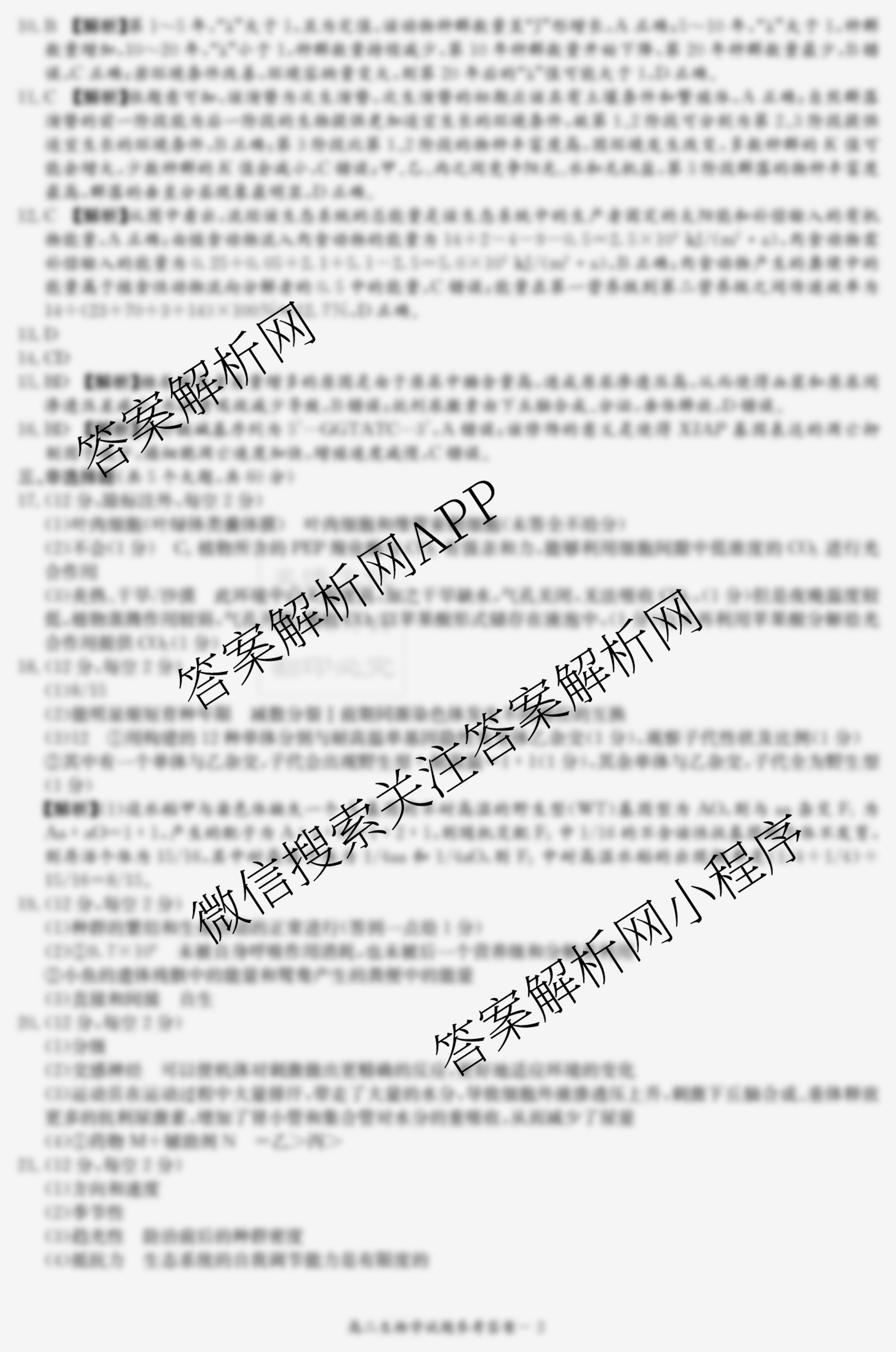 - 高二炎德英才名校联考联合体2023年秋季年级期末考试生物答案