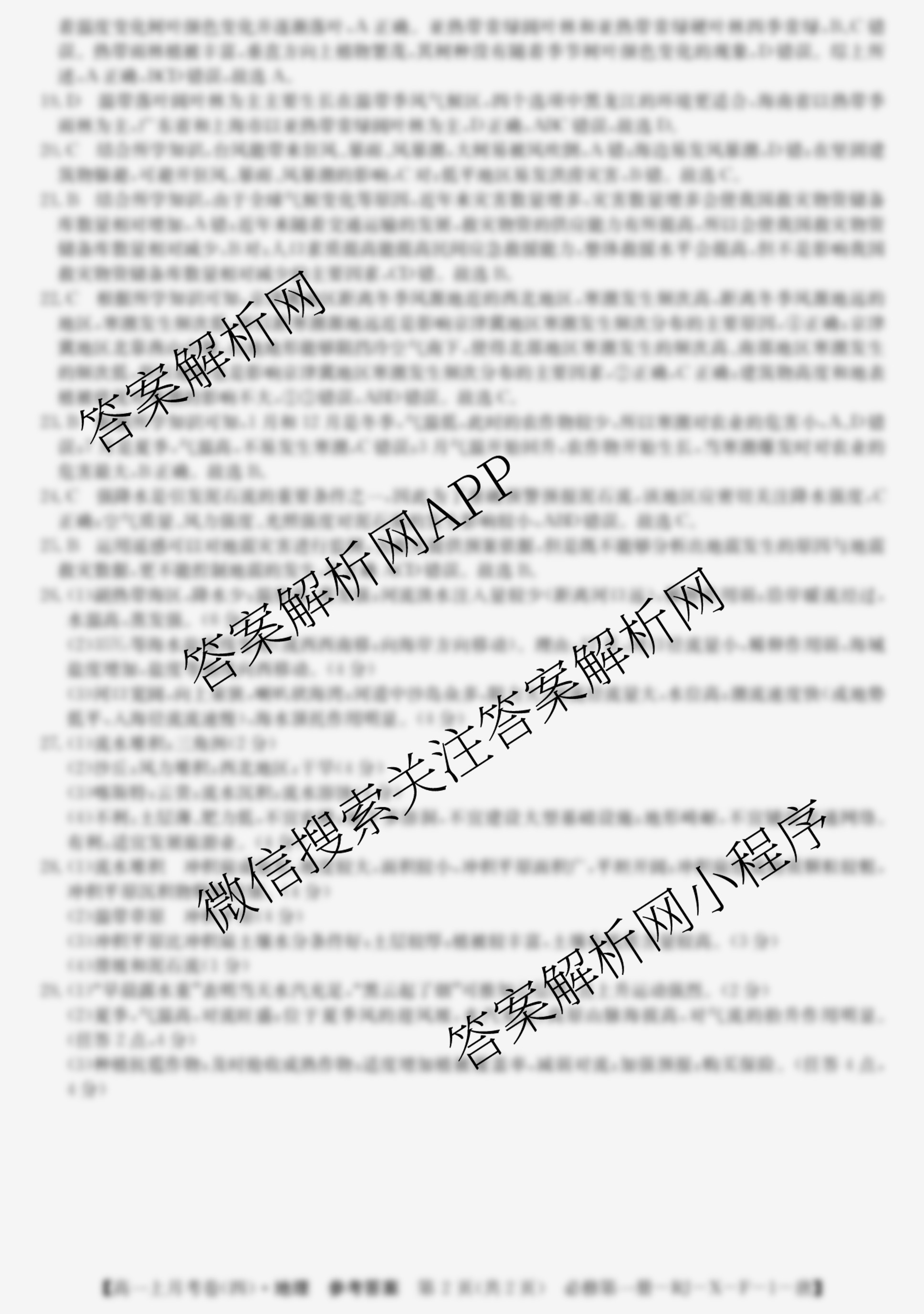 2023~2024全国名校高一上学期第四次月考试卷地理(必修第一册-RJ-X-F-1-唐)答案