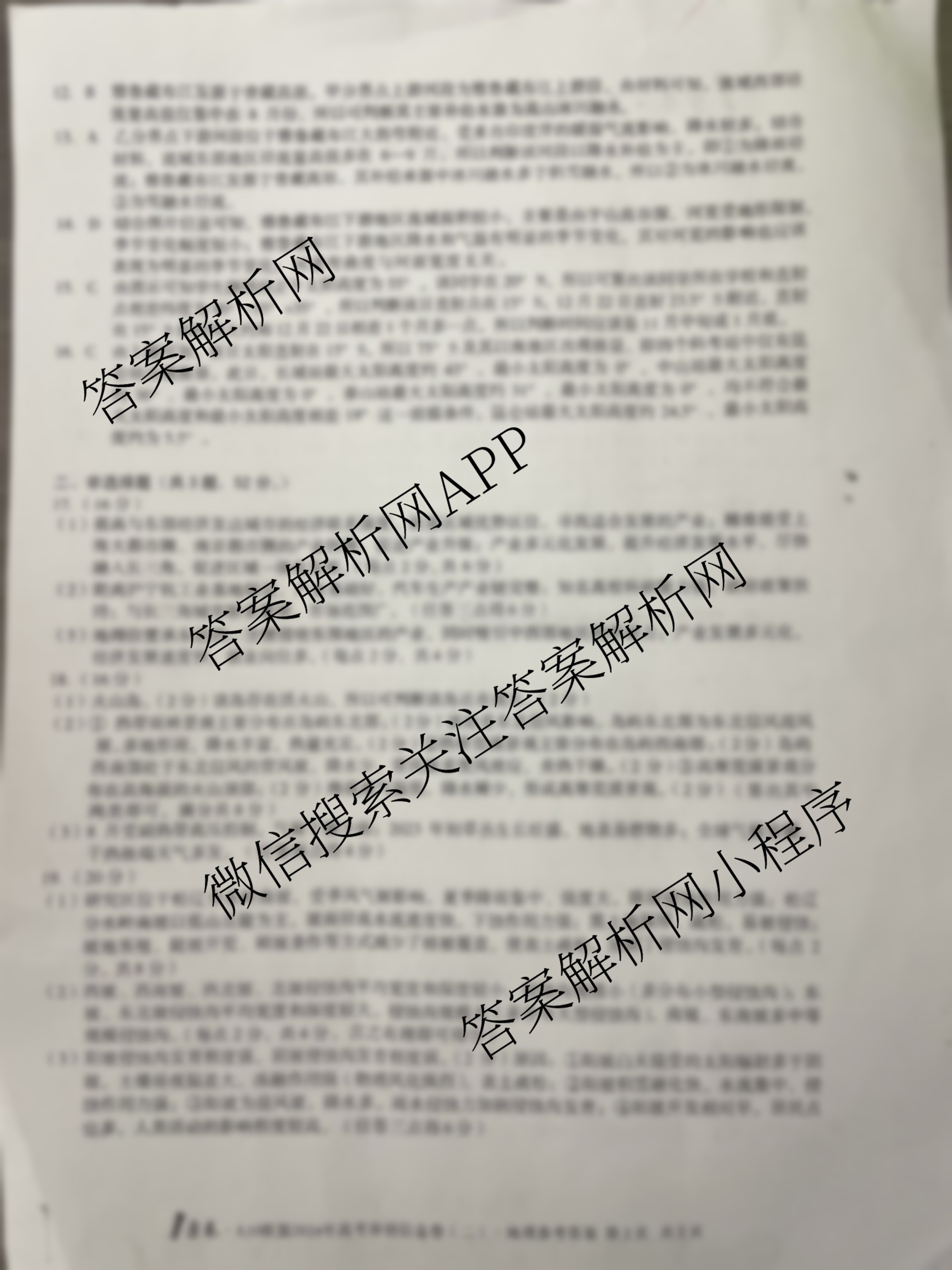 - [1号卷]·A10联盟2024年高考原创信息卷(二)2地理答案
