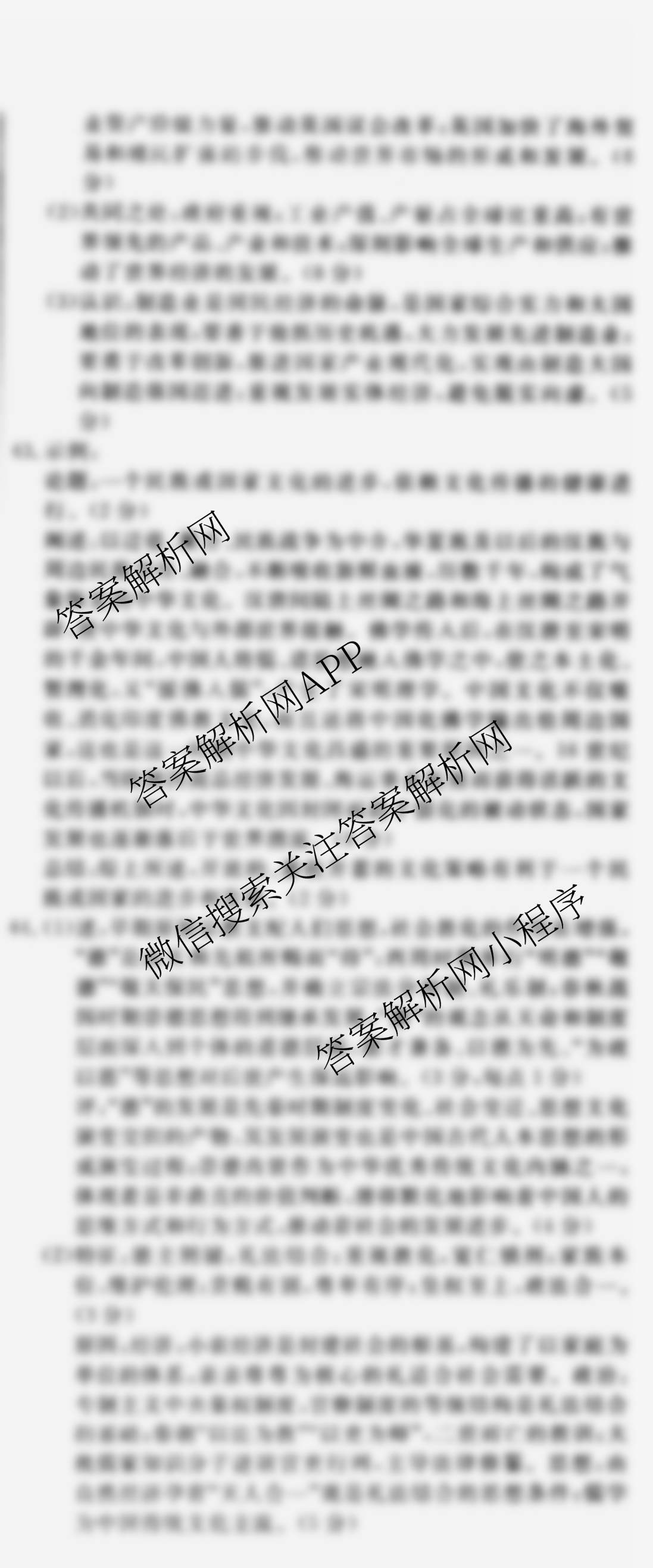 - (高三)(黄冈八模)2024届政治模拟测试卷(安徽)(二)2答案