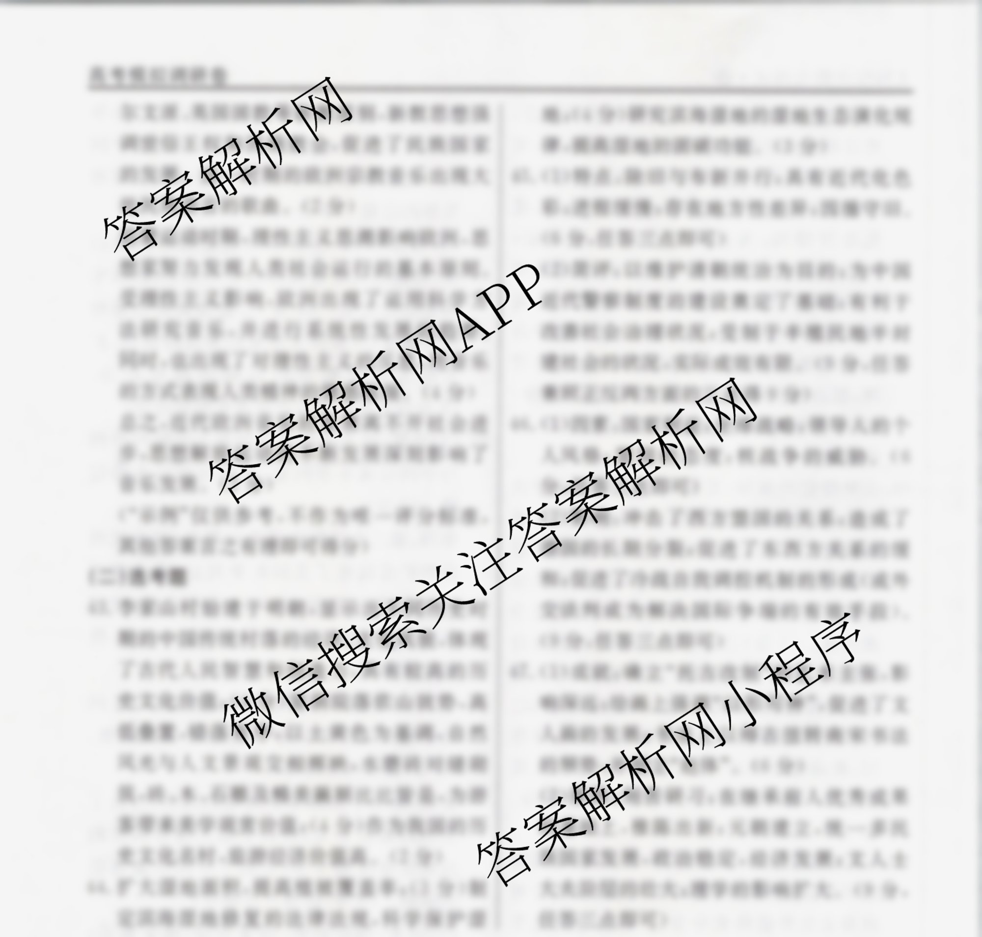 - (衡水名师卷)高考模拟调研卷 2024年普通高等学校招生全国统一考试模拟试题 文综(空心◇)(二)2答案