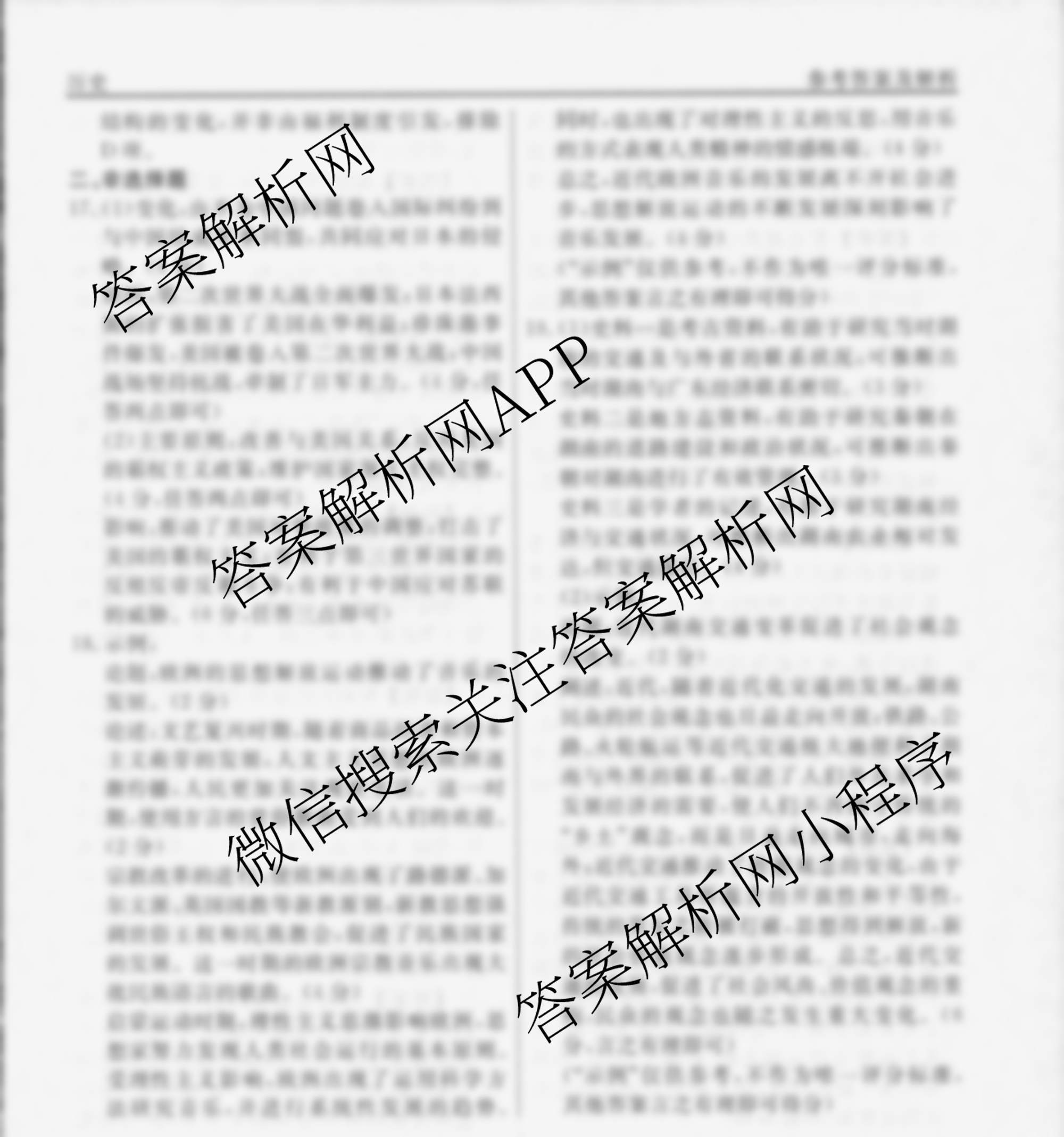 - [高三][衡水名师卷]高考模拟调研卷 2024年普通高中学业水平选择性考试模拟试题 历史(双菱形)(二)2答案