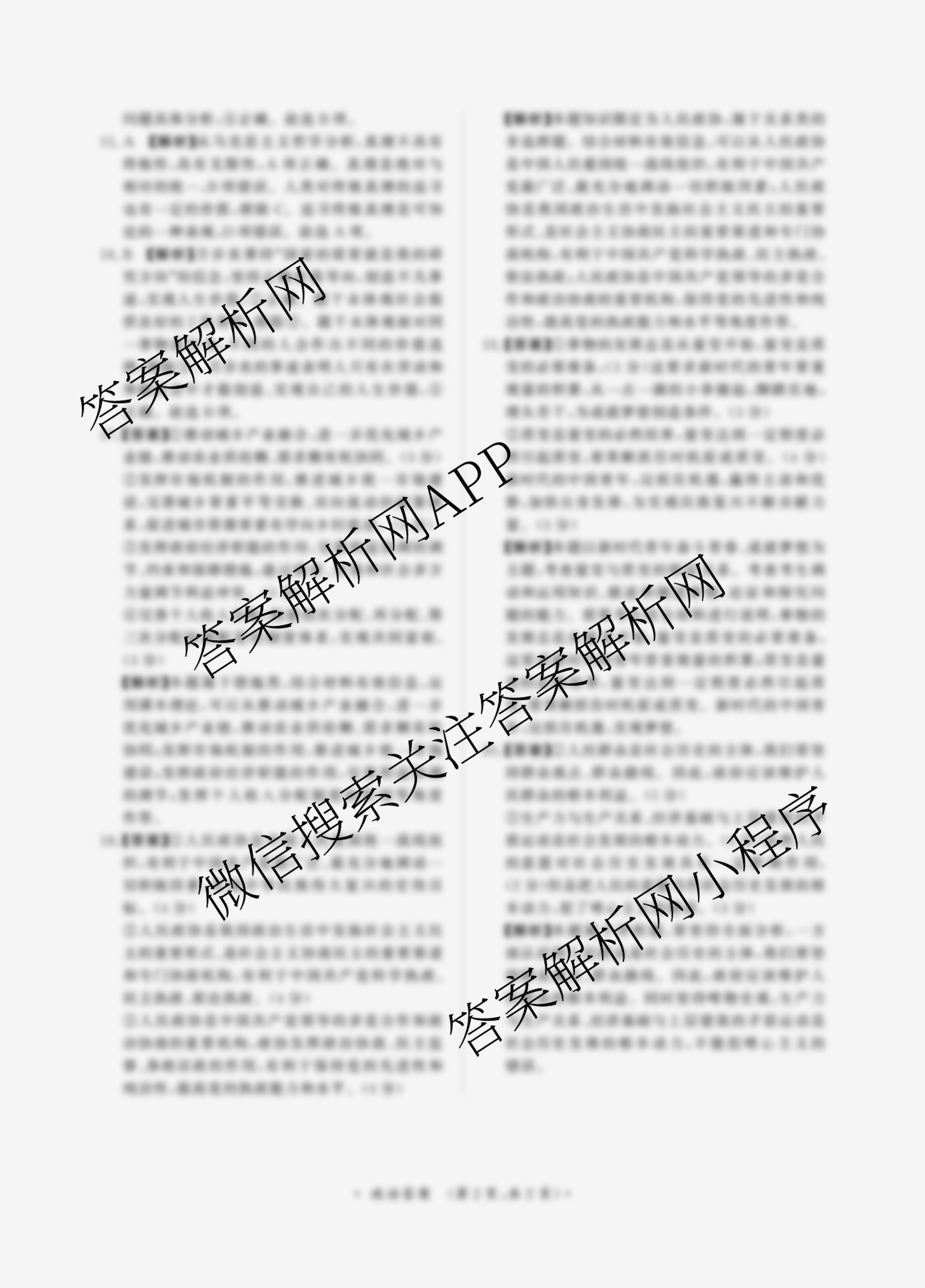 - (高二)2025届普通高等学校招生全国统一考试青桐鸣联考(9月)政治答案
