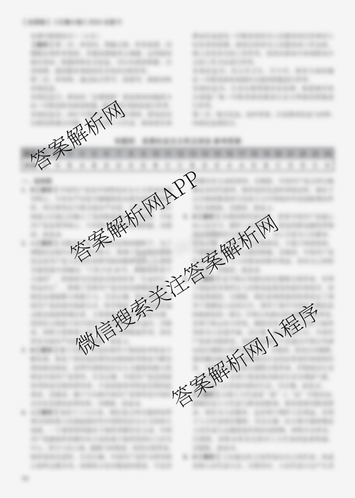 (全国卷) 《正确小卷》 2024总复习政治质检卷 专题三答案