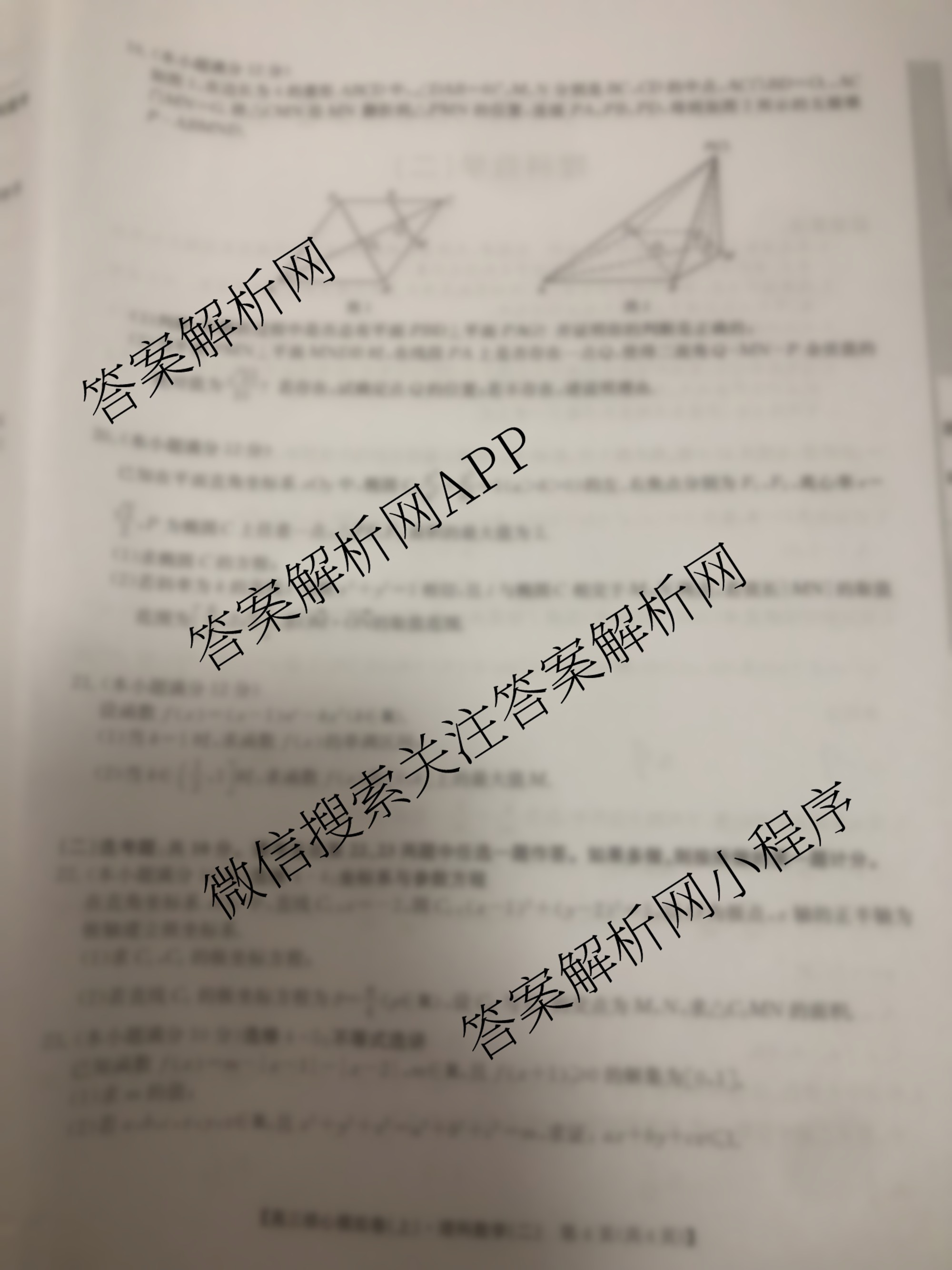 - 2023~2024高三(九师联盟)·学年核心模拟卷(上)(二)2理数(老教材)答案