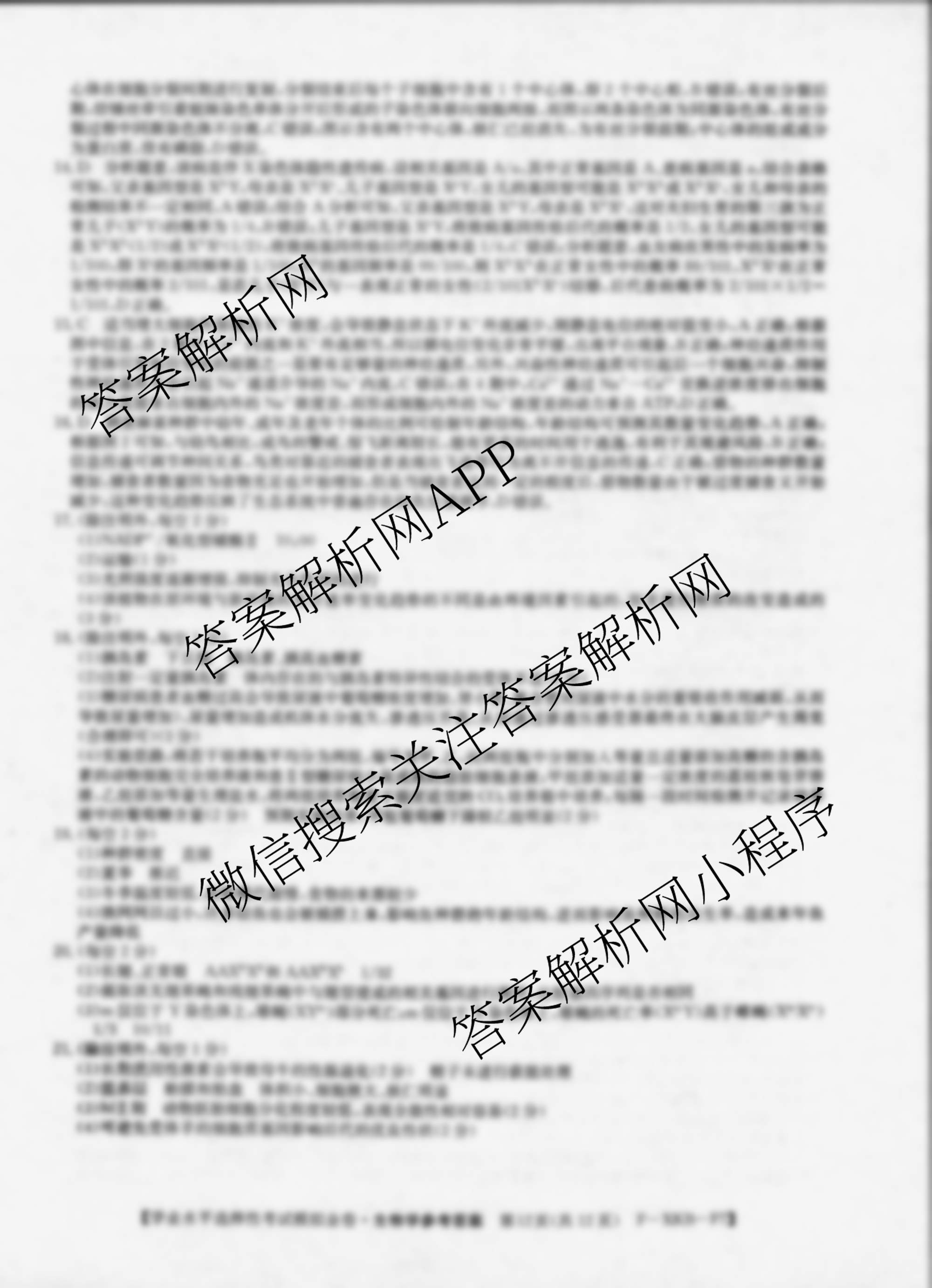 XKB-F72024届普通高中学业水平选择性考试模拟金卷(六)6生物(F-XKB-F7)答案