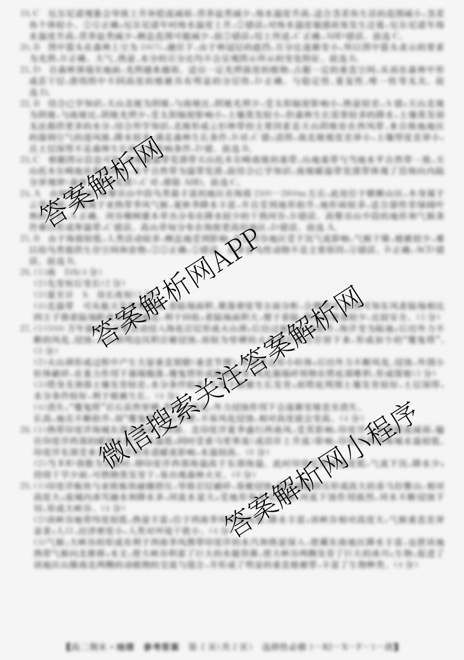 - (高二)2023~2024全国名校第一学期期末考试 地理(选择性必修1-RJ-X-F-1-唐)答案