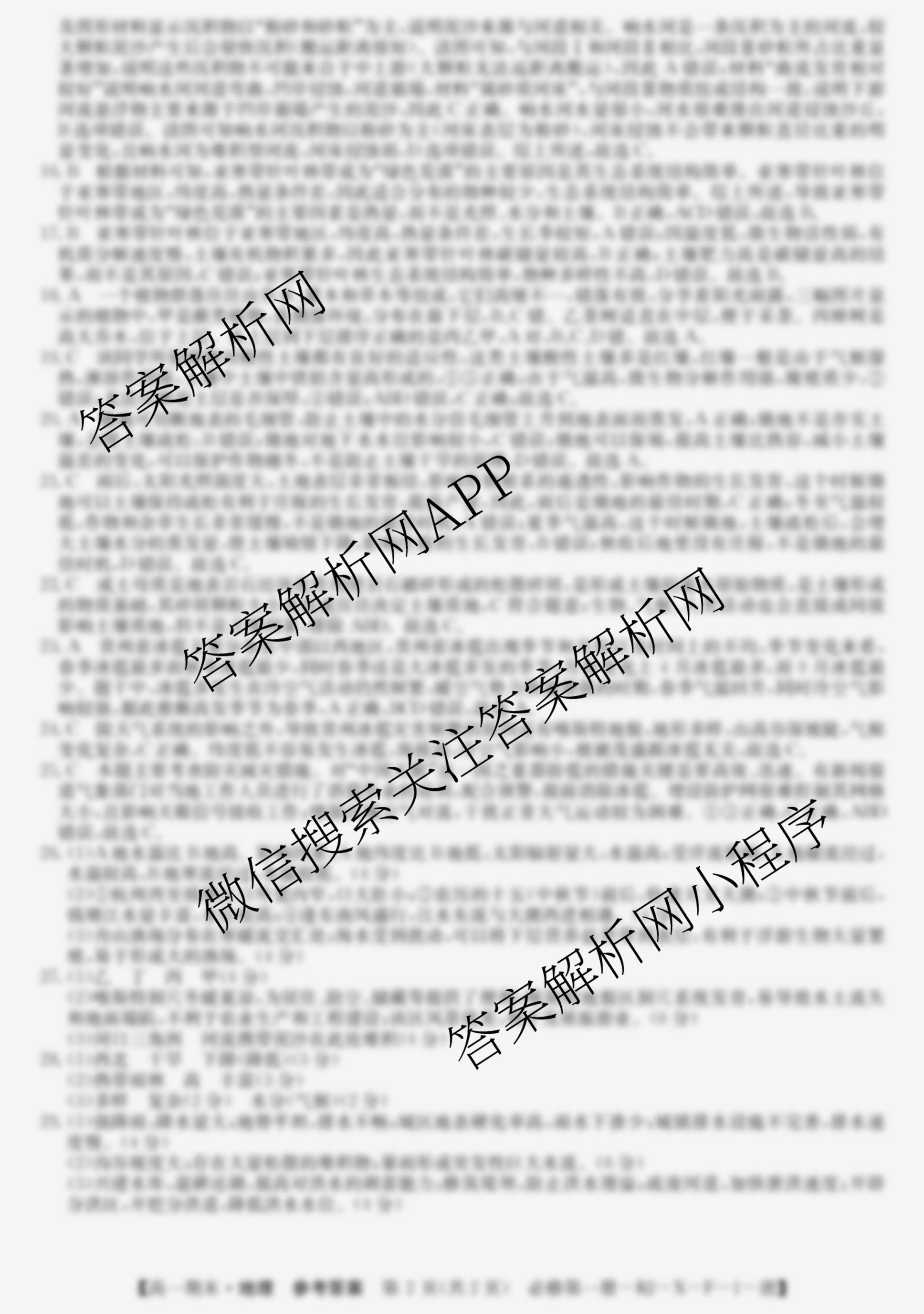 - 2023~2024高一全国名校第一学期期末考试地理(必修第一册-RJ-X-F-1-唐)答案