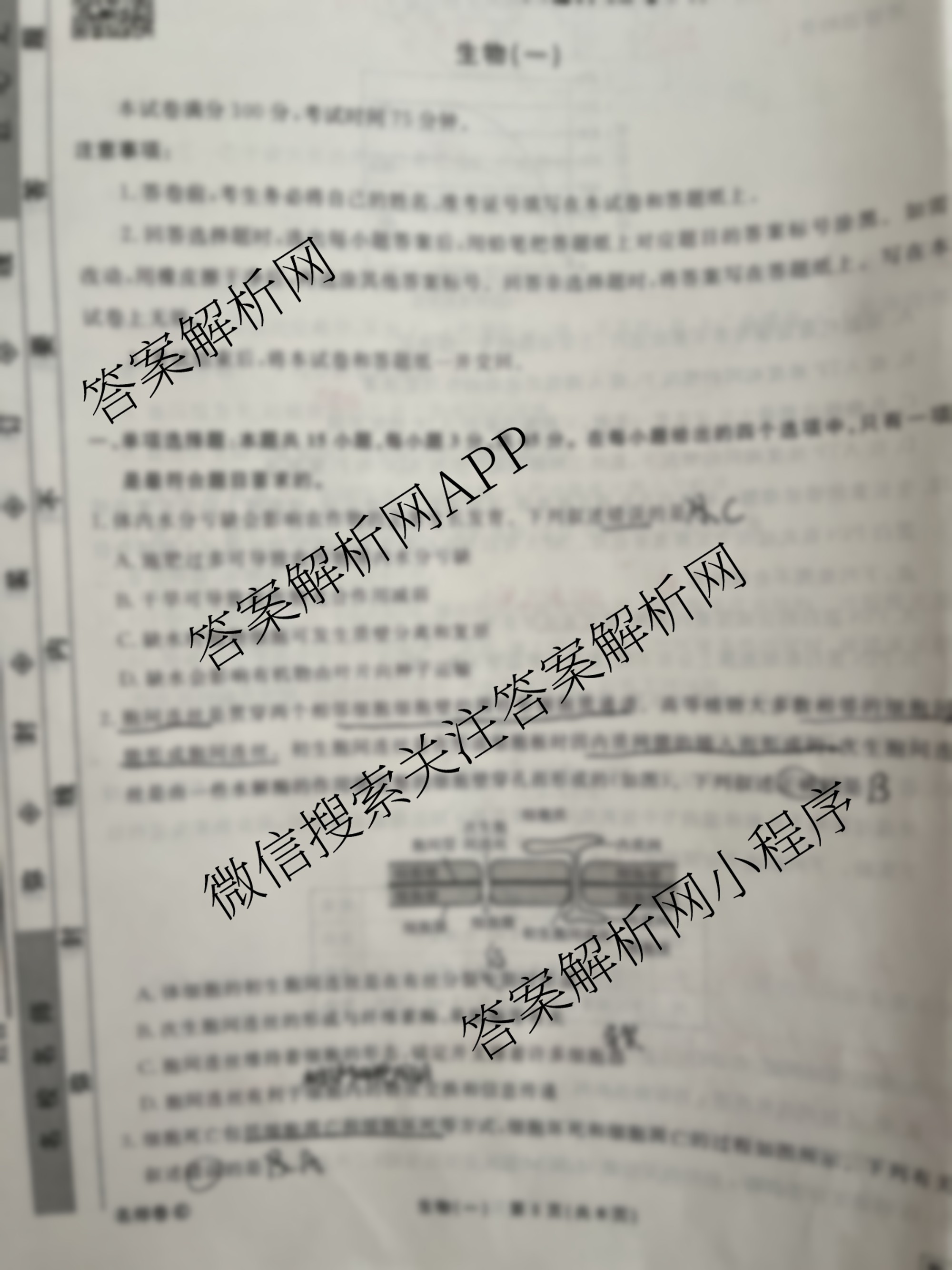 - (高三)衡水名师卷高考模拟检测卷 2024年普通高中学业水平选择性考试模拟试题 生物(双菱形)(一)1答案