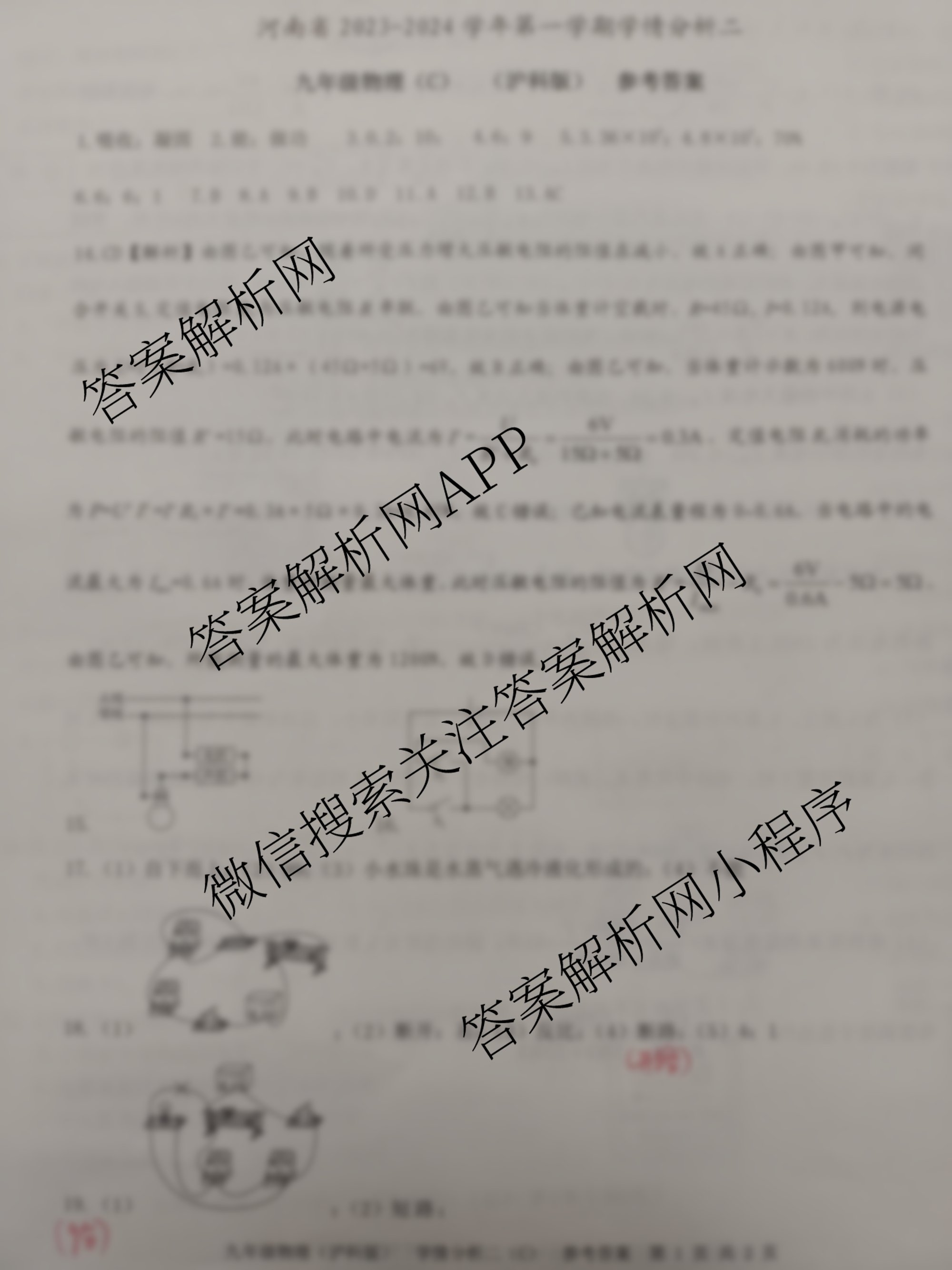 - 2023-2024河南省学年[九年级]第一学期学情分析二 物理(B人教版)答案