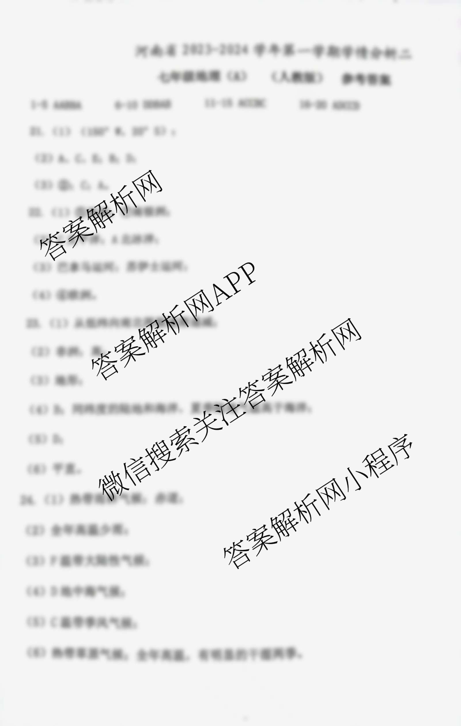 - 2023~2024河南省学年七年级第一学期学情分析二 地理(A星球版)答案