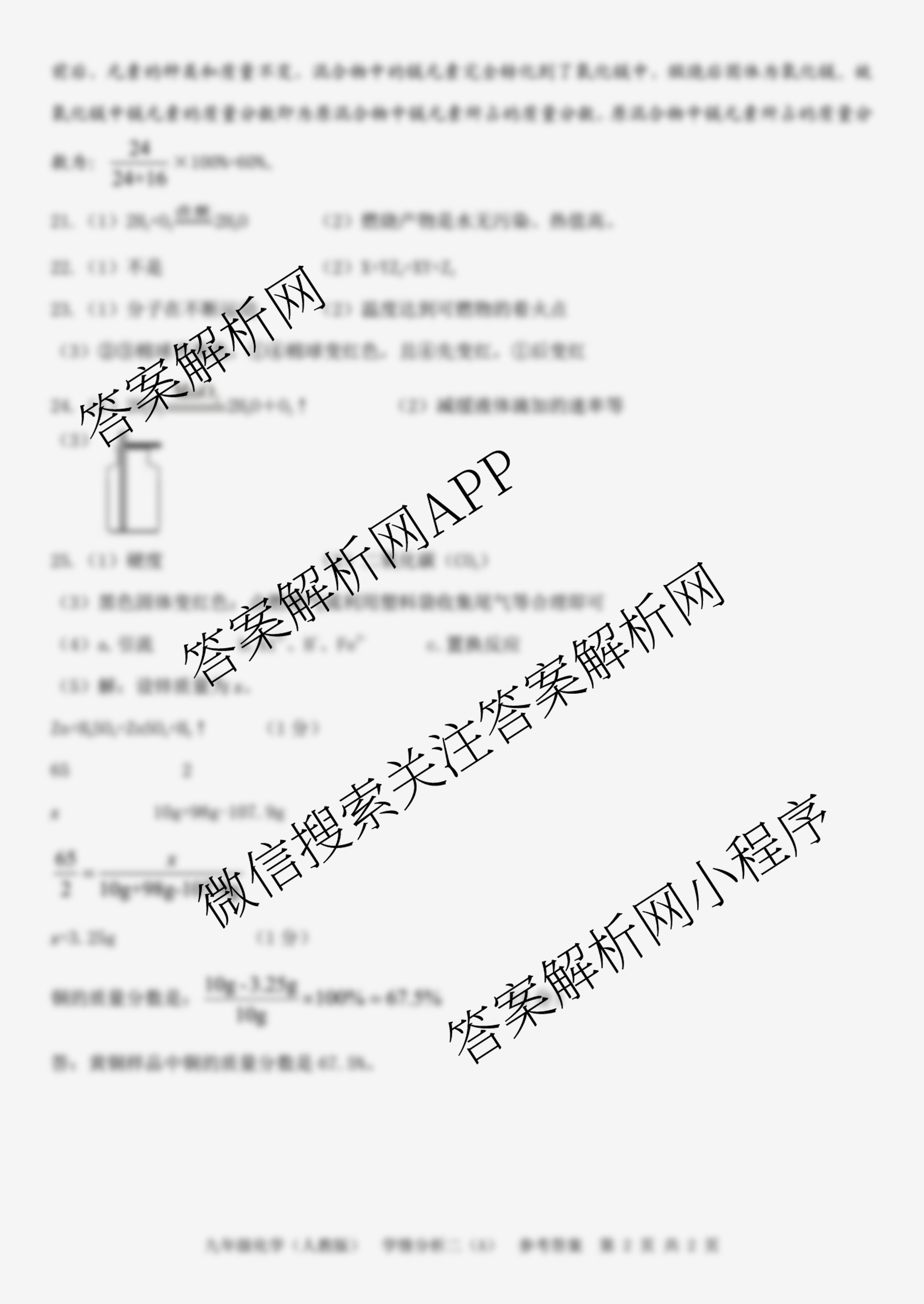 - 2023~2024河南省学年[九年级]第一学期学情分析二 化学(A人教版)答案