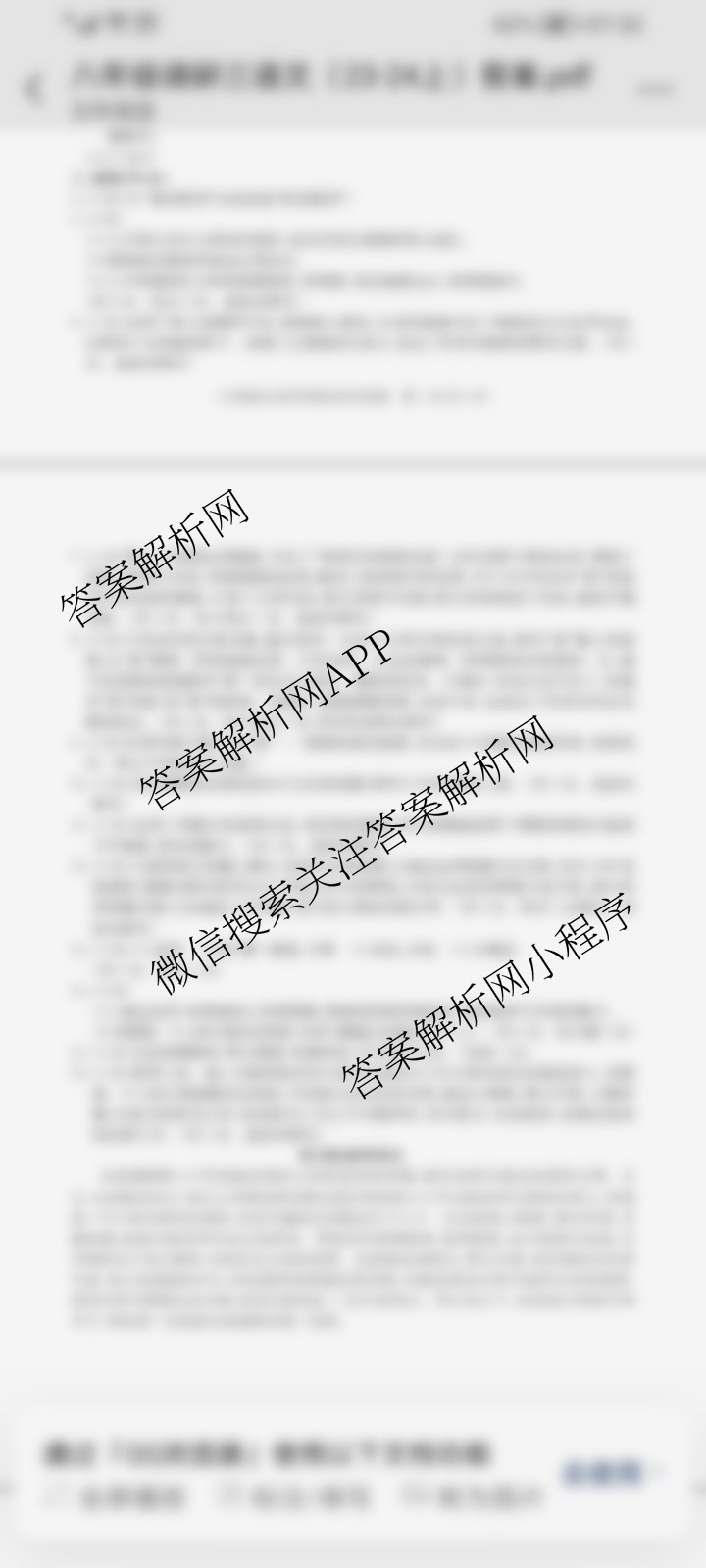 - 2023~2024[八年级]安徽省学年上学期教学质量调研三 语文答案