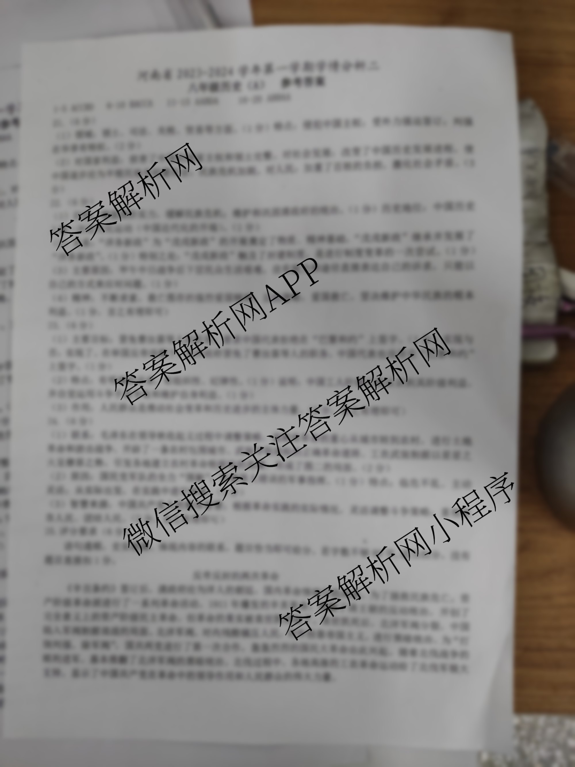 - 2023-2024(八年级)河南省学年第一学期学情分析二 历史(A部编版)答案