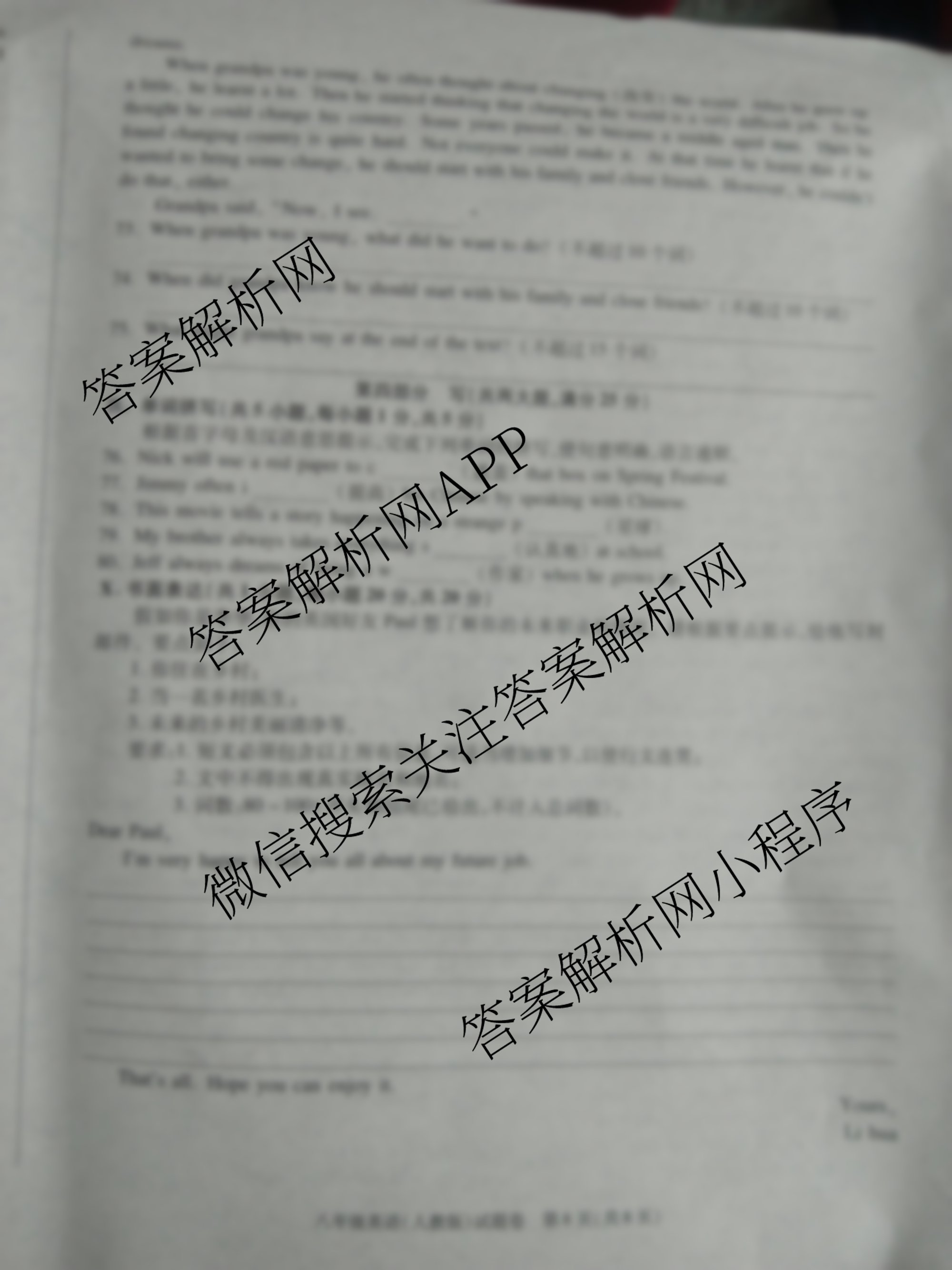 安徽省2023-2024学年八年级上学期教学质量调研三 英语(人教版)试题,目前学英语报答案已经汇总了安徽省2023-2024学年八年级上学期教学质量调研三 英语(人教版)试题的各科答案和试卷,获取更多安徽省教学质量调研答案解析,请在关注本站。