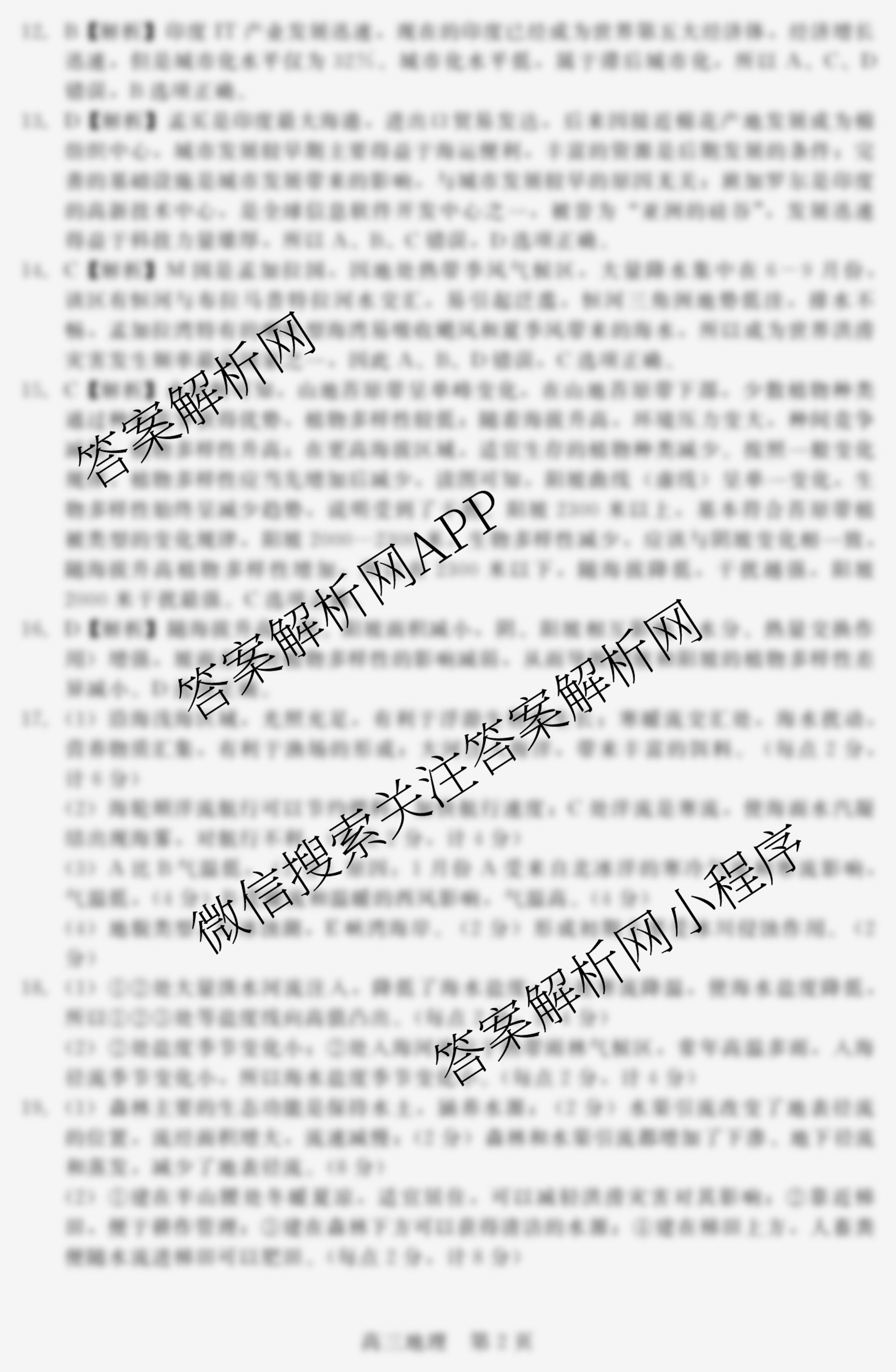 - 2023-2024(NT)·学年第一学期12月[高三]阶段测试卷地理答案