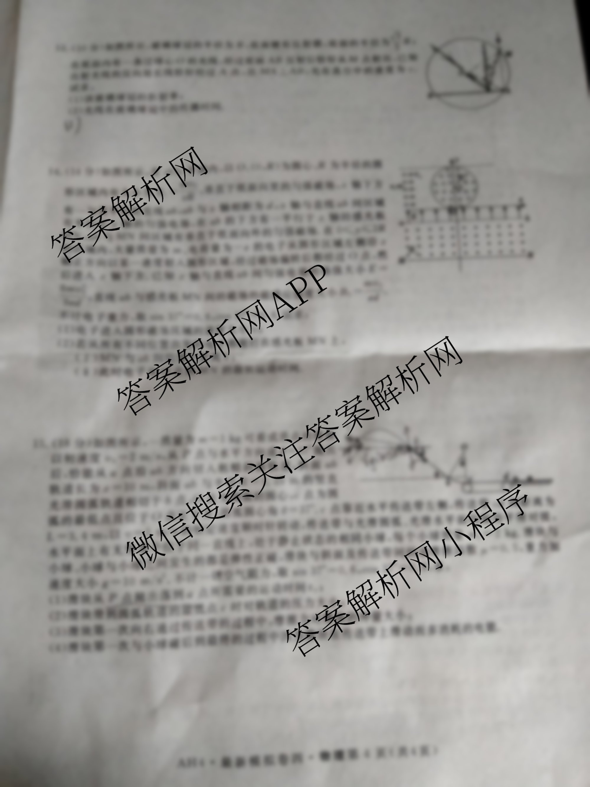 - [高三]2024年普通高等学校招生统一考试最新模拟卷·物理(AH4)(四)4答案