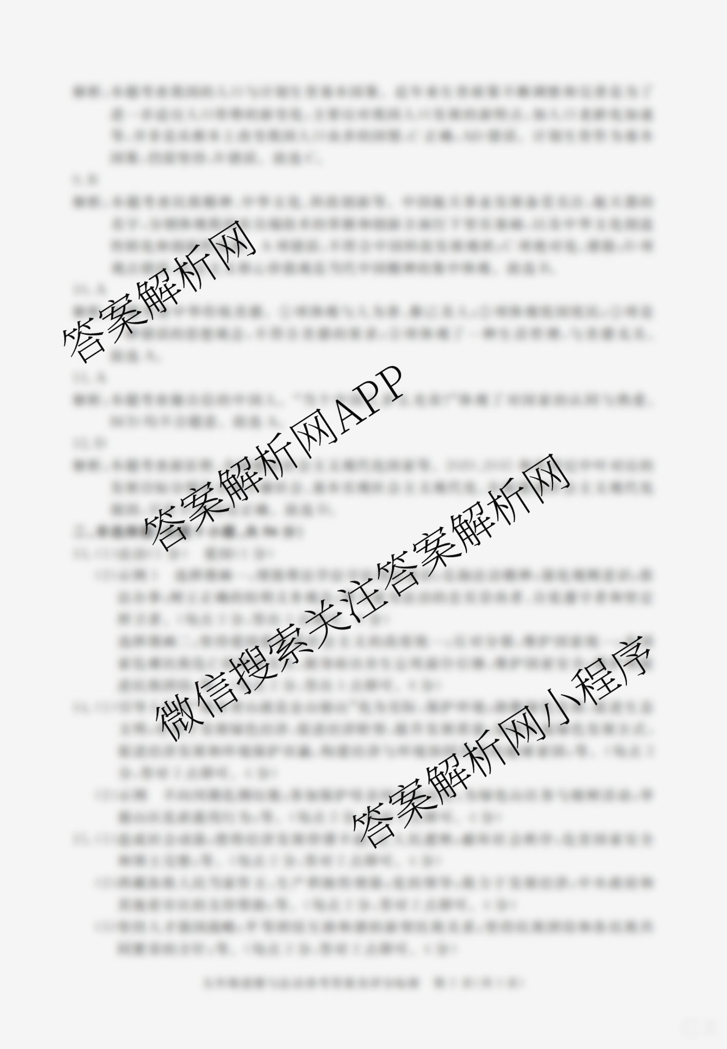 - 2023-2024安徽省学年(九年级)上学期教学质量调研三 道德与法治答案