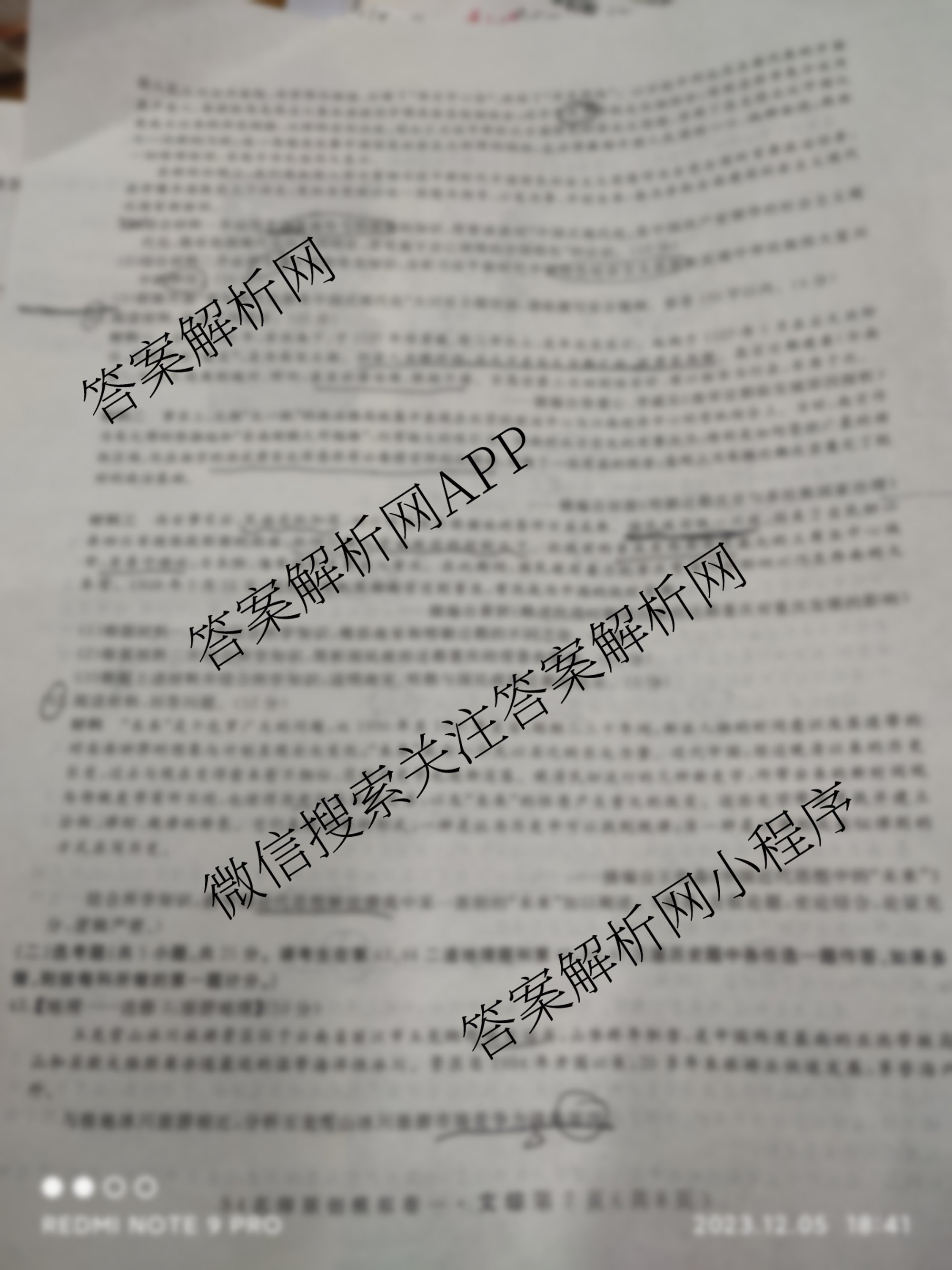 - 2024届(高三)总复习名师原创模拟 文综(S4)(一)1答案