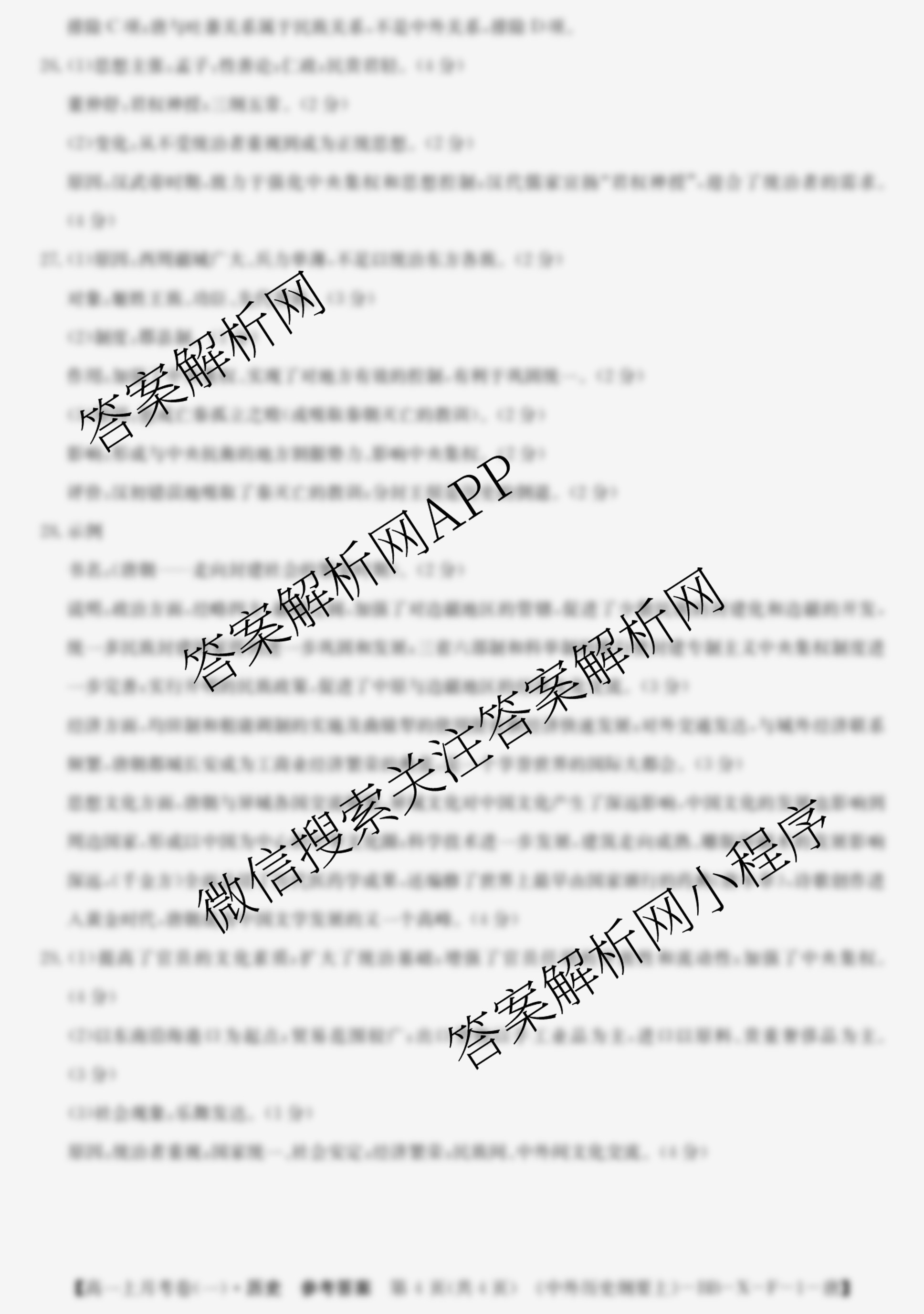 - [高一]2023~2024全国名校上学期第一次月考试卷历史(中外历史纲要上-BB-X-F-1-唐)答案