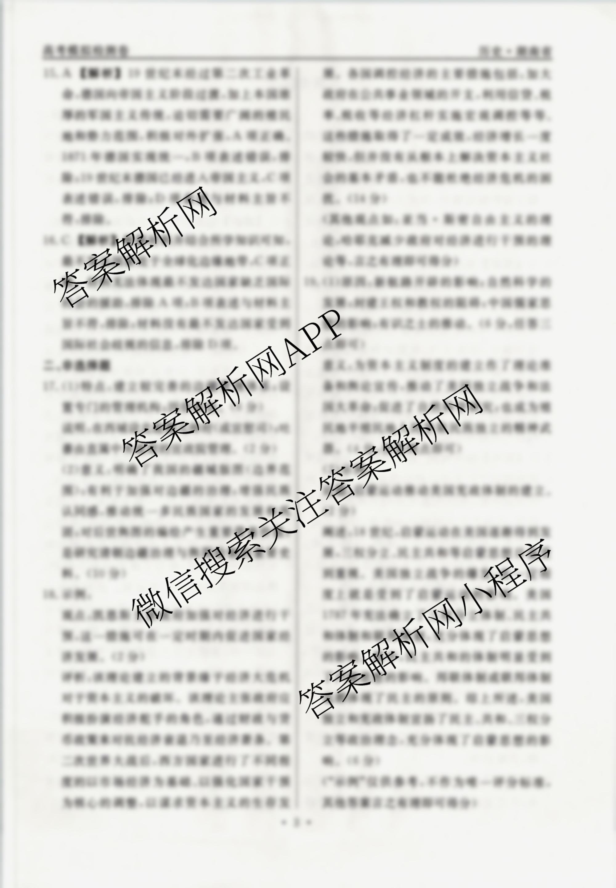 - (衡水名师卷)高考模拟检测卷 湖南省2024年普通高等学校招生全国统一考试模拟试题 历史(一)1答案