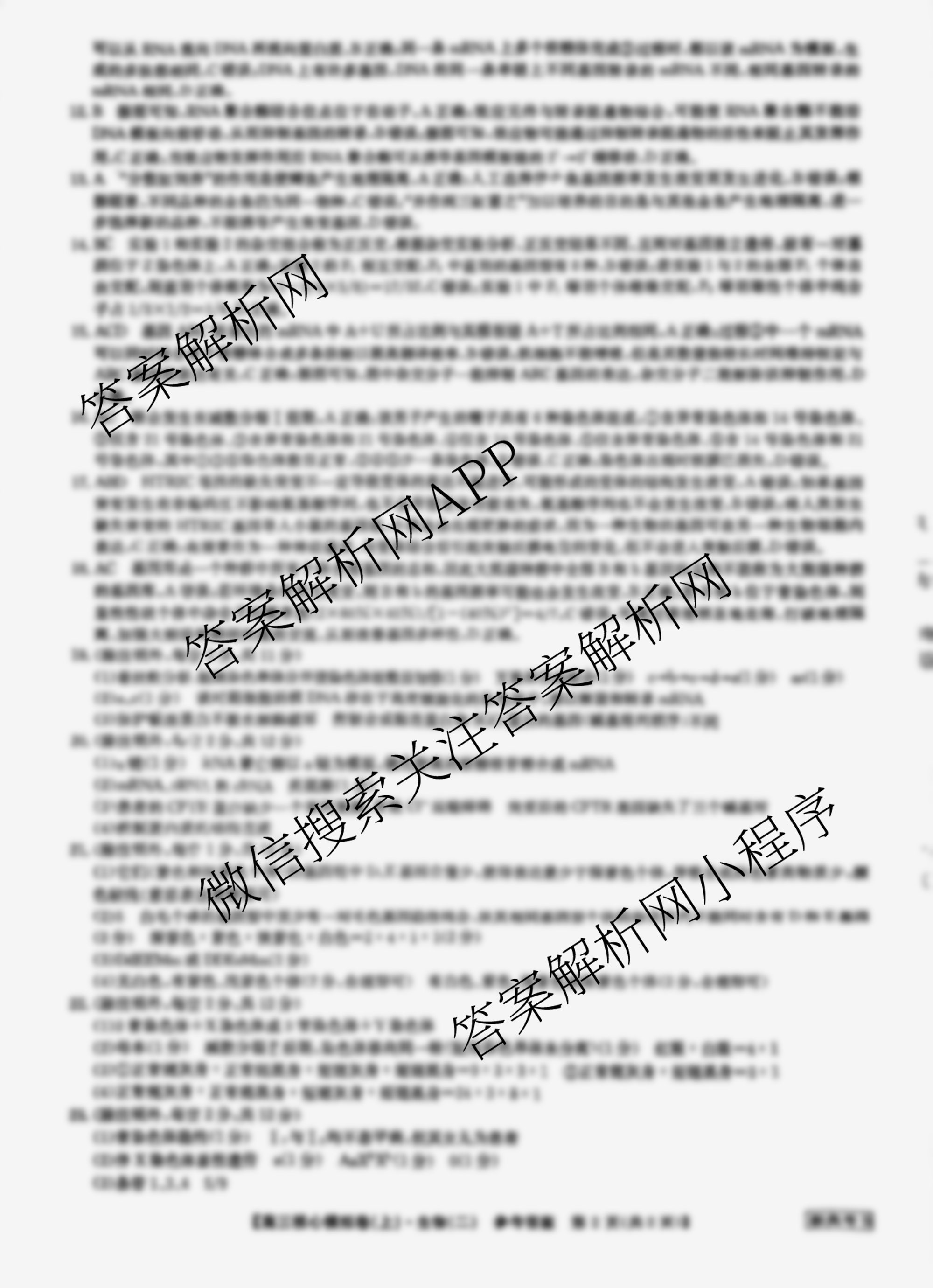 - (高三)(九师联盟)·2023~2024学年核心模拟卷(上)(二)2生物(新高考W)答案