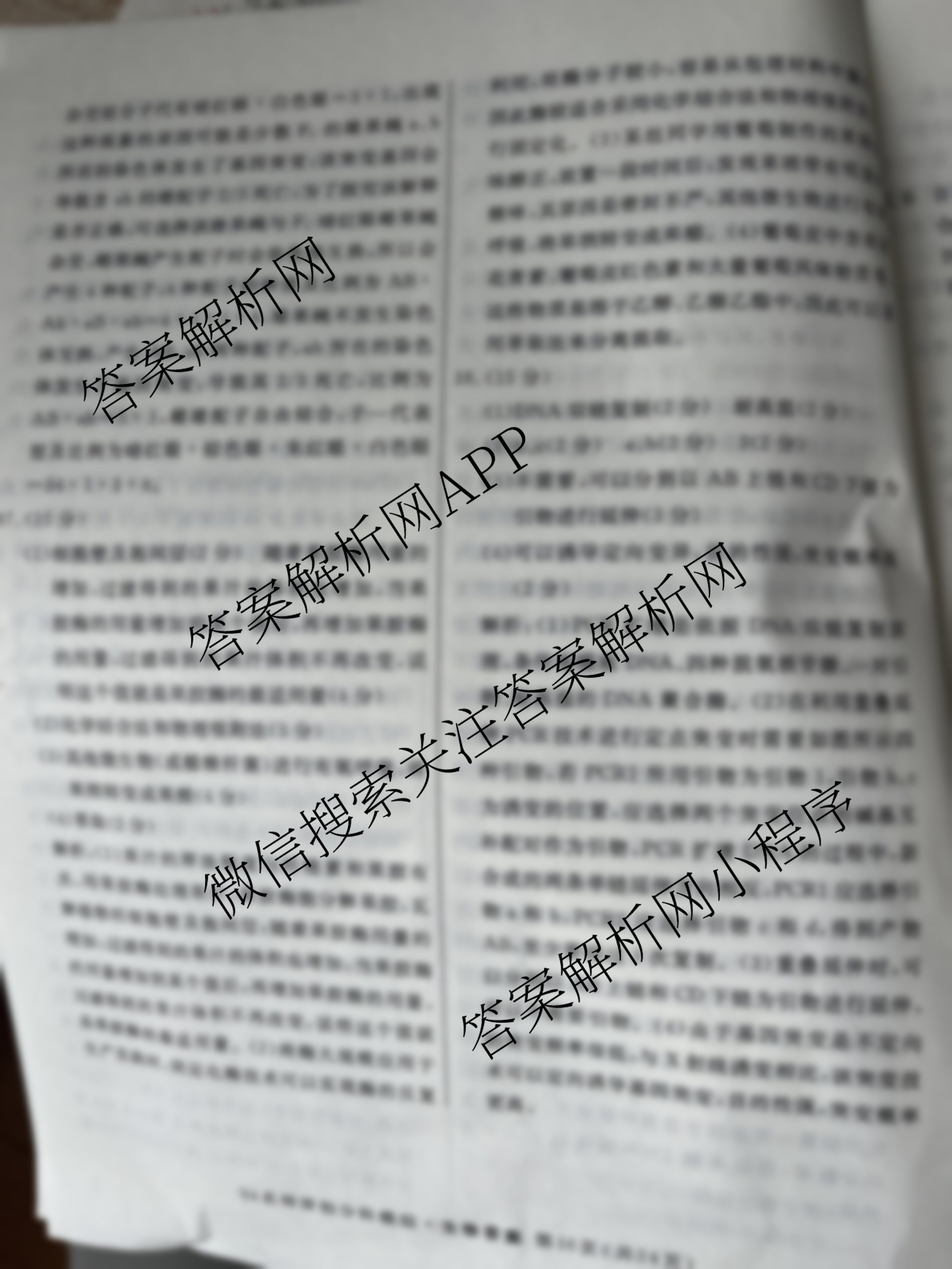 - 2024届[高三]总复习名师原创分科模拟 生物(S4)(四)4答案