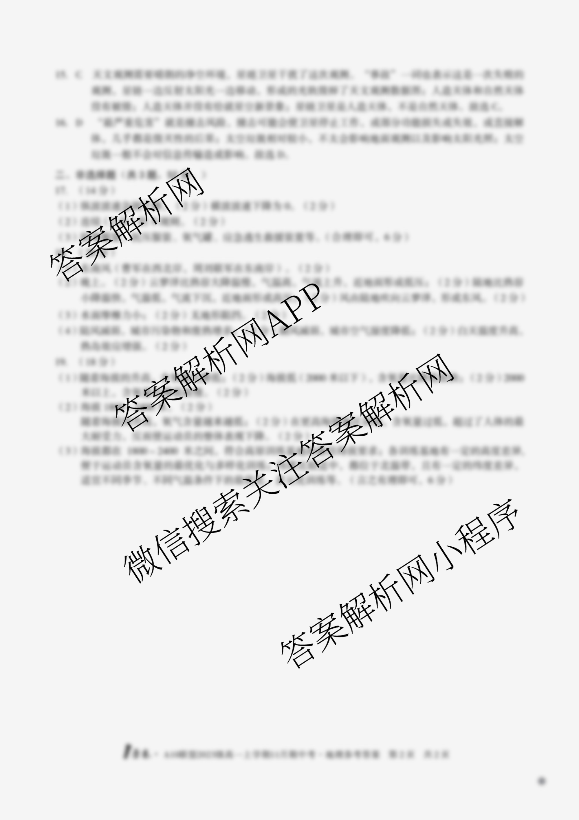 - (1号卷)A10联盟2023级[高一]上学期11月期中考B卷地理答案