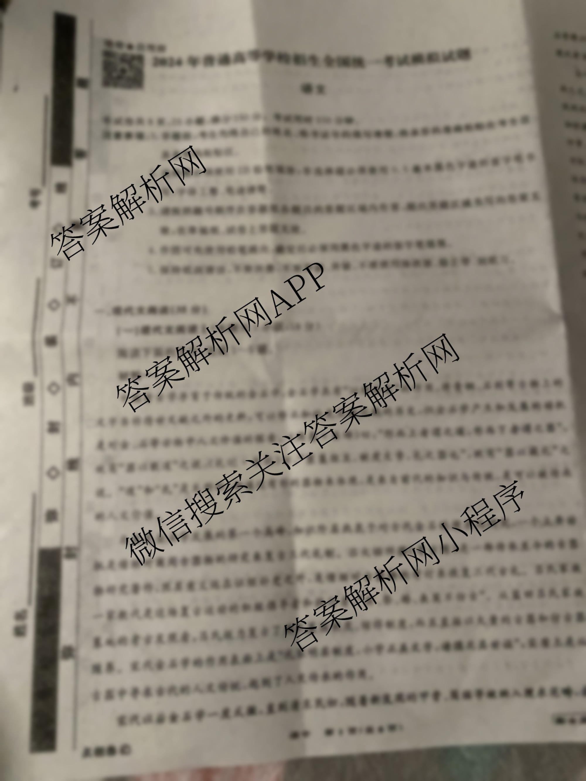 高三(衡水名师卷)高考模拟卷 2024年普通高等学校招生全国统一考试模拟试题 语文(空心◇)(一)1试题