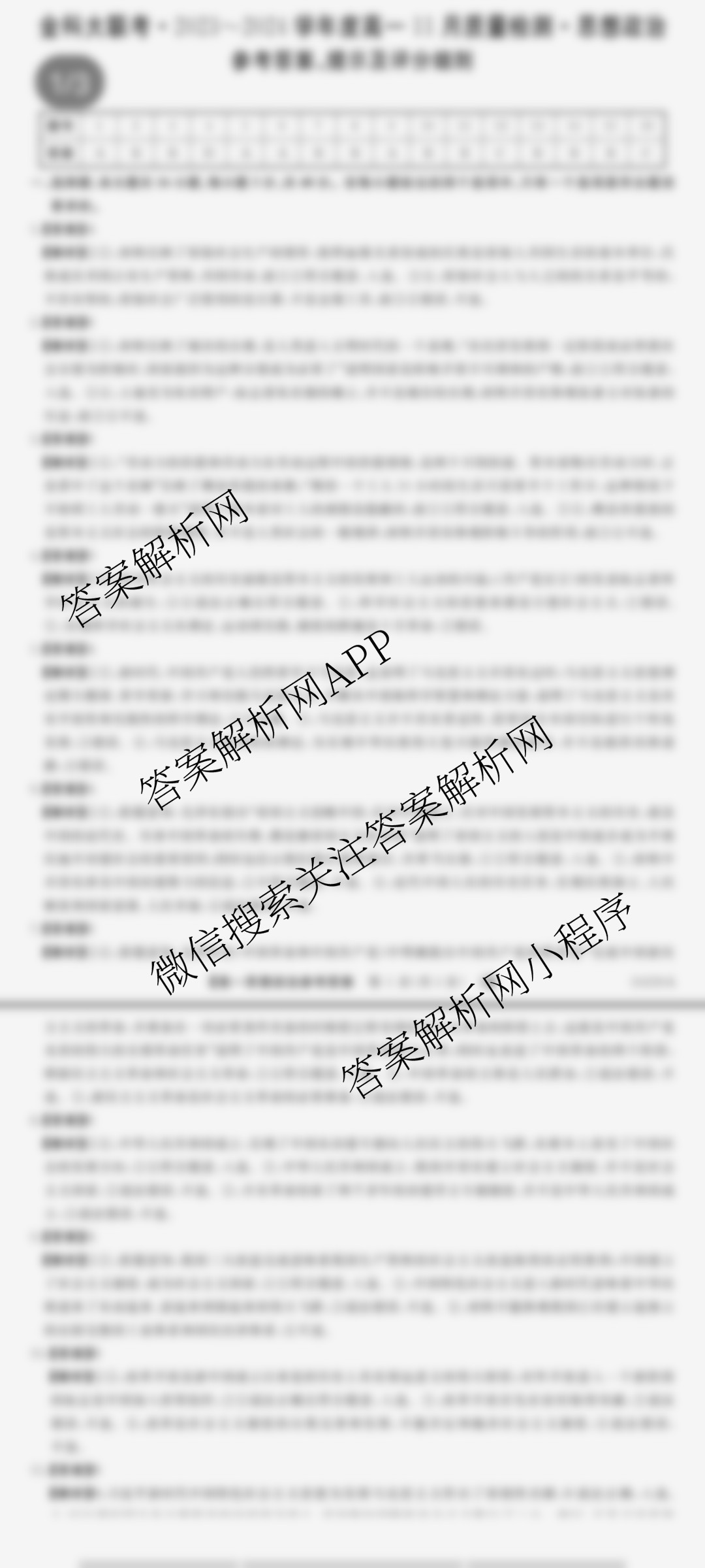 - [高一][金科大联考]·2023~2024学年度11月质量检测(24226A)政治(B)答案