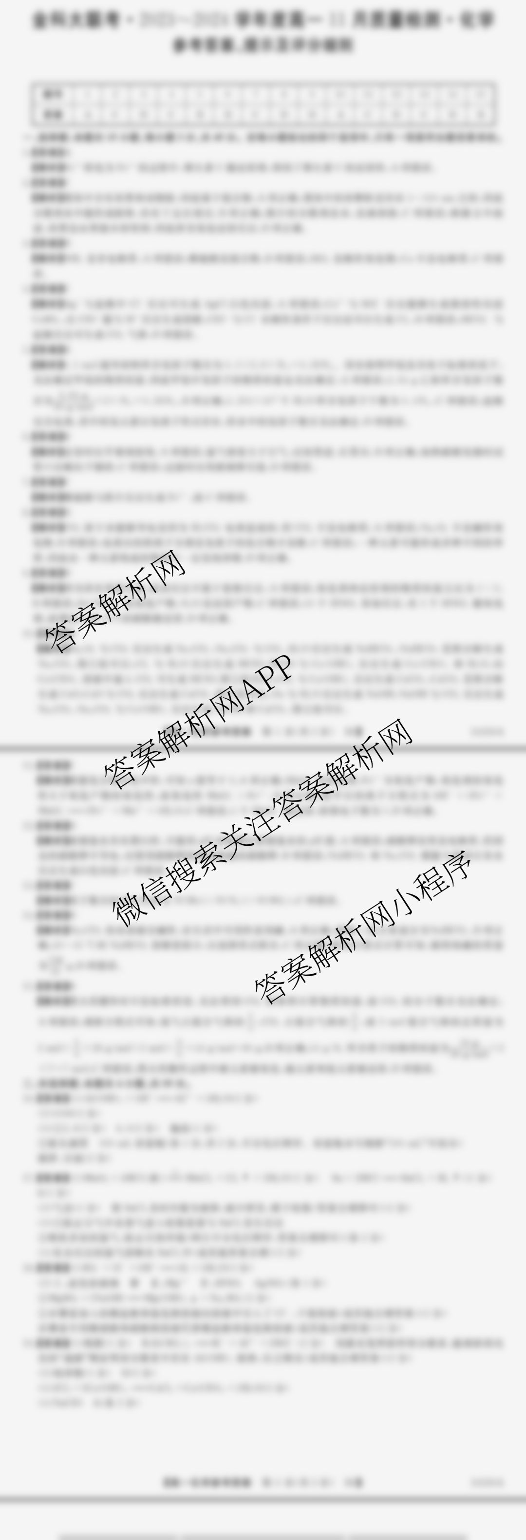 - 2023-2024[高一][金科大联考]·学年度11月质量检测(24226A)化学(A)答案