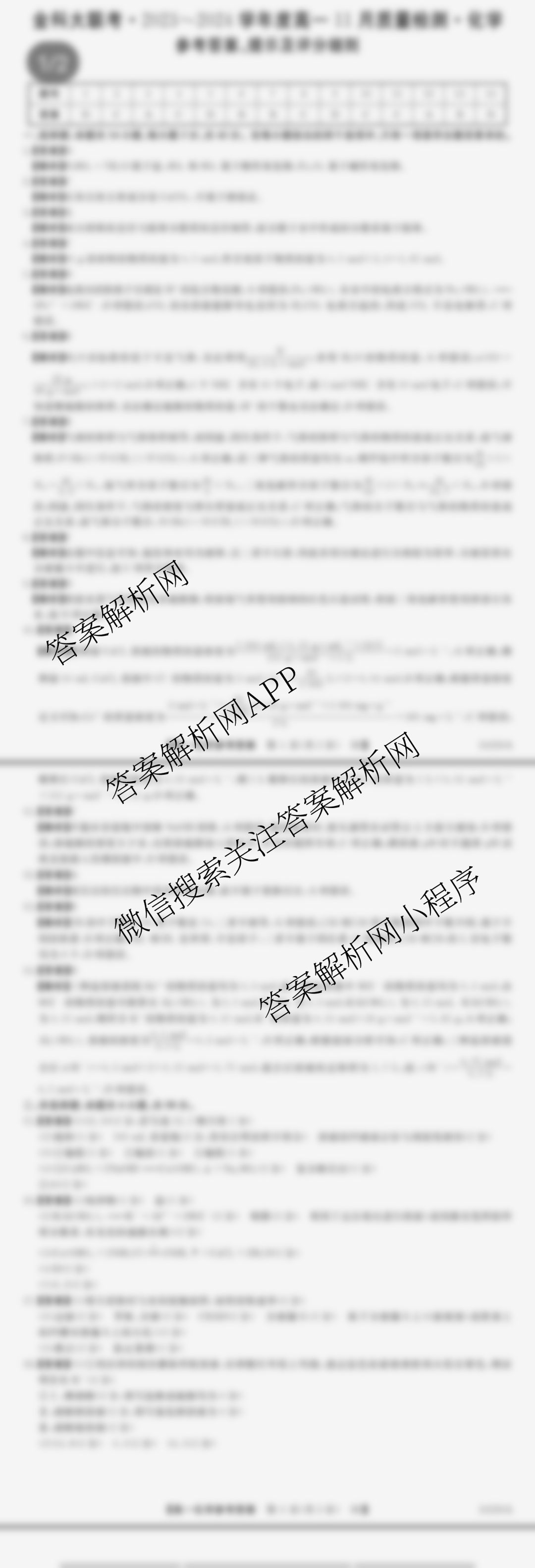 - 高一(金科大联考)2023~2024学年度11月质量检测(24226A)化学(B2)答案