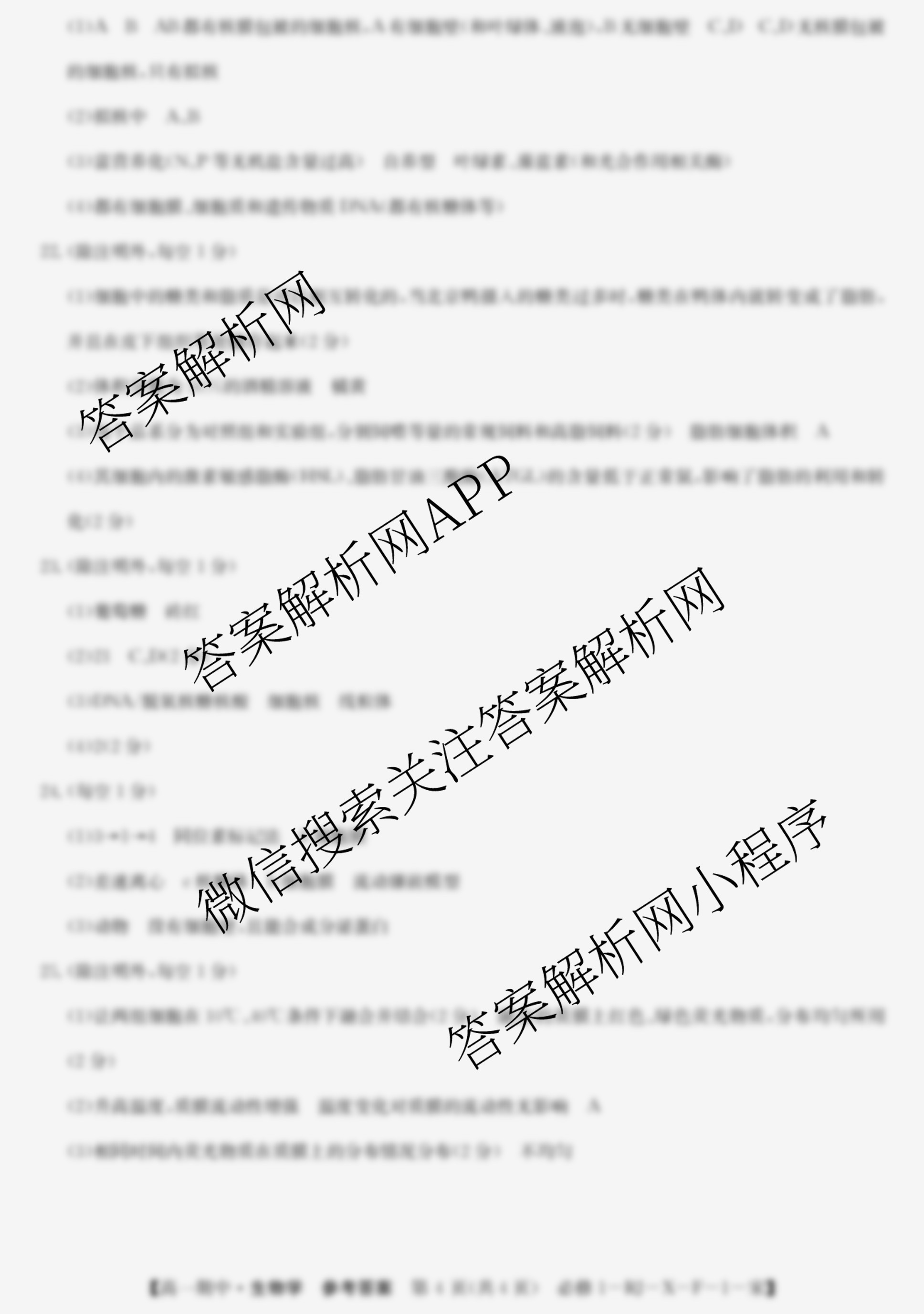 - 2023~2024全国名校[高一]第一学期期中考试生物(必修1-RJ-X-F-1-宋)答案