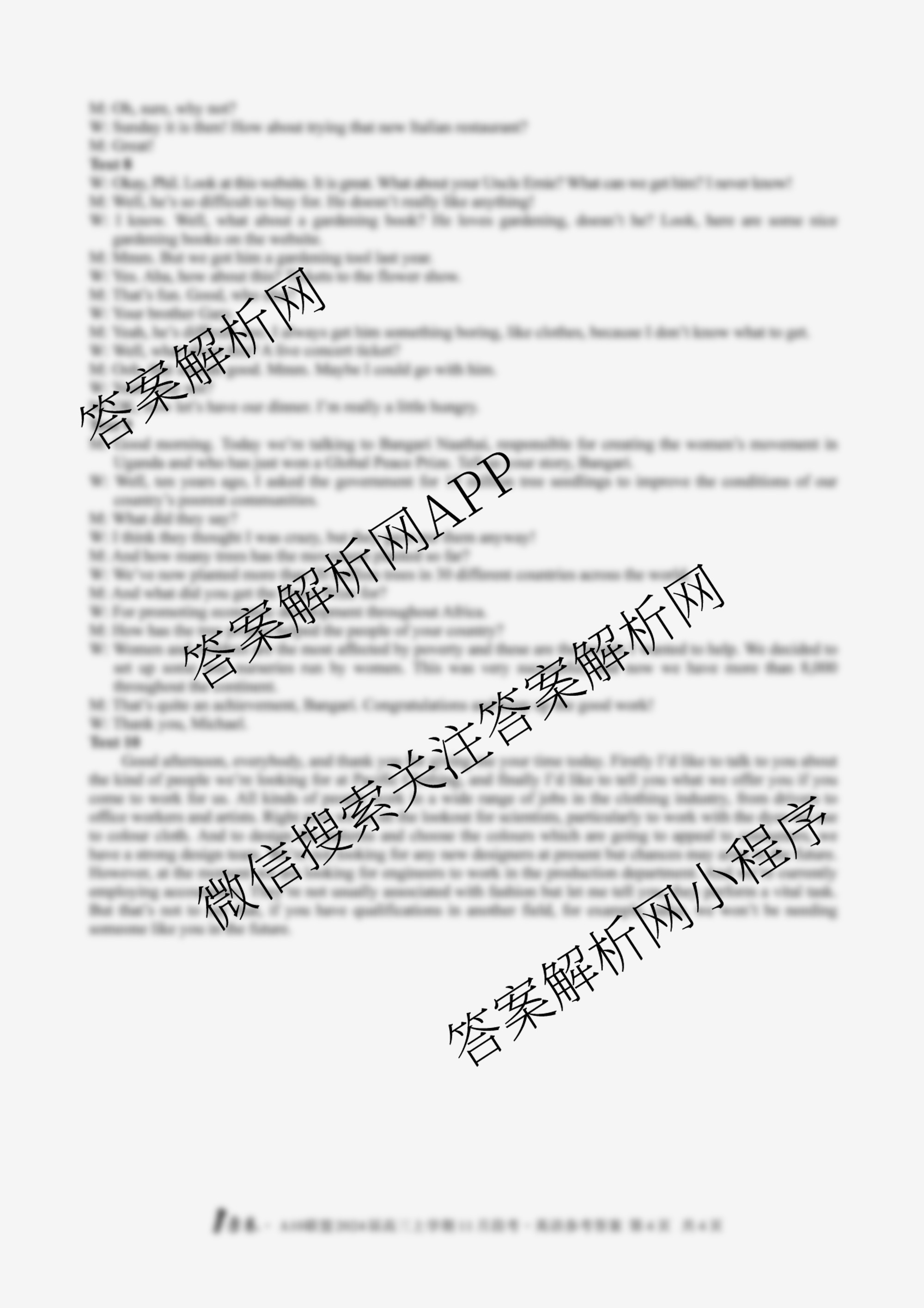 - [高三][1号卷]A10联盟2024届上学期11月段考(11.10)英语答案