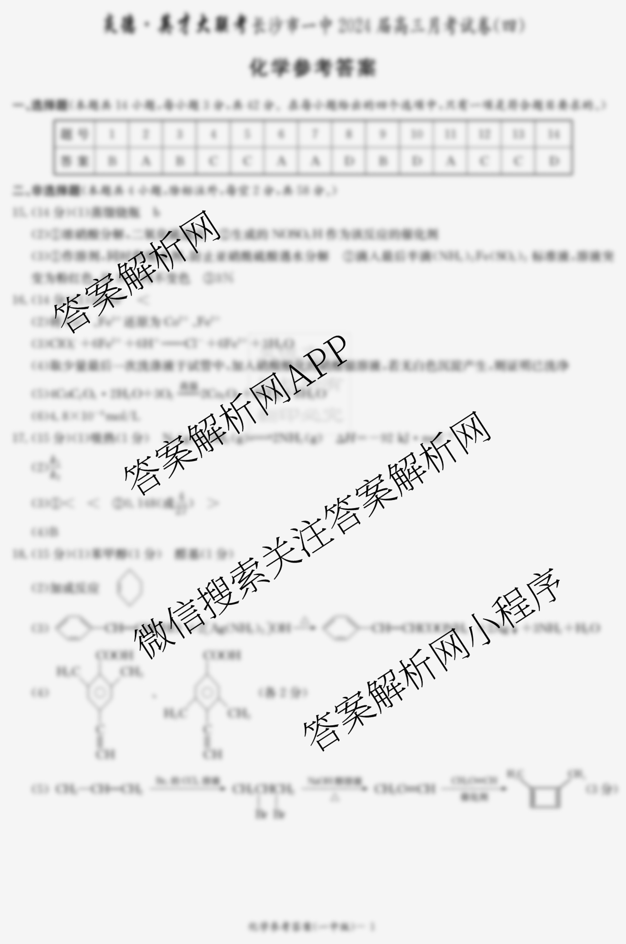 - 2024届(高三)炎德英才大联考·长沙市一中月考试卷(四)化学答案