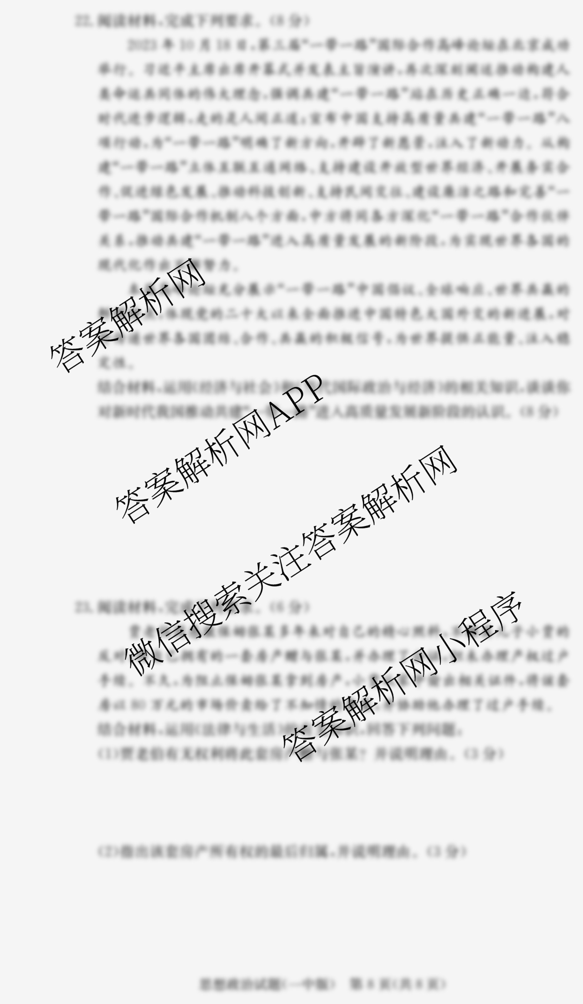 - (炎德英才大联考)长沙市一中2024届(高三)月考试卷(四)政治答案