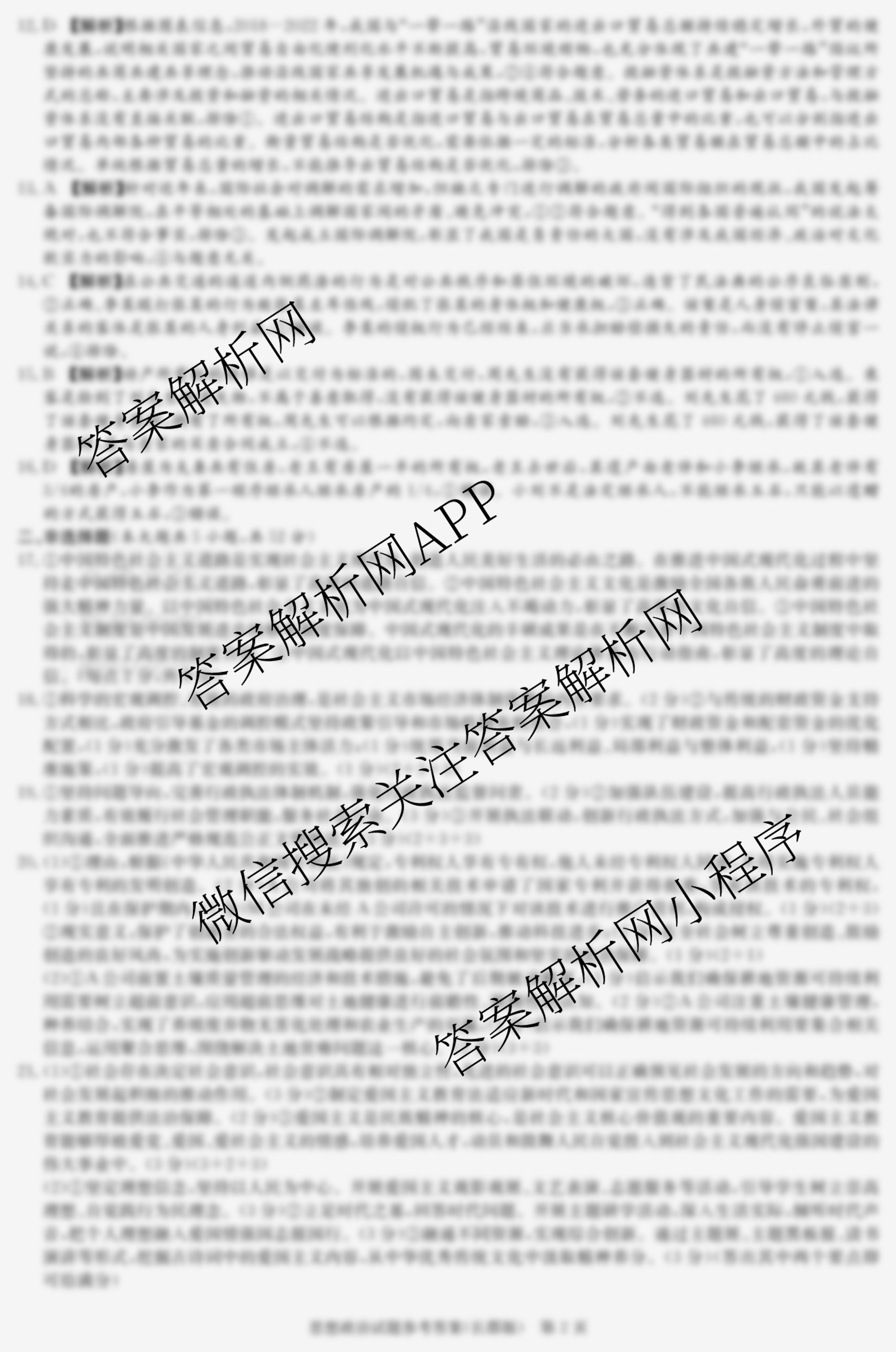 (高三)[炎德英才大联考]·长郡中学2024届月考试卷(三)政治答案