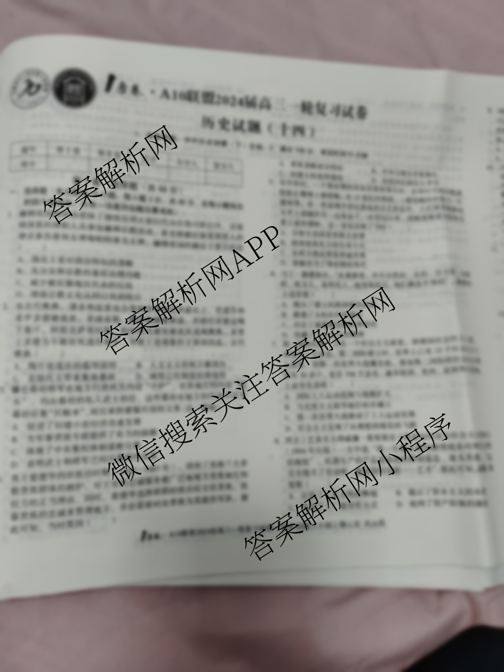 1号卷A10联盟2024届高三一轮复习试卷 历史(十四)14试题