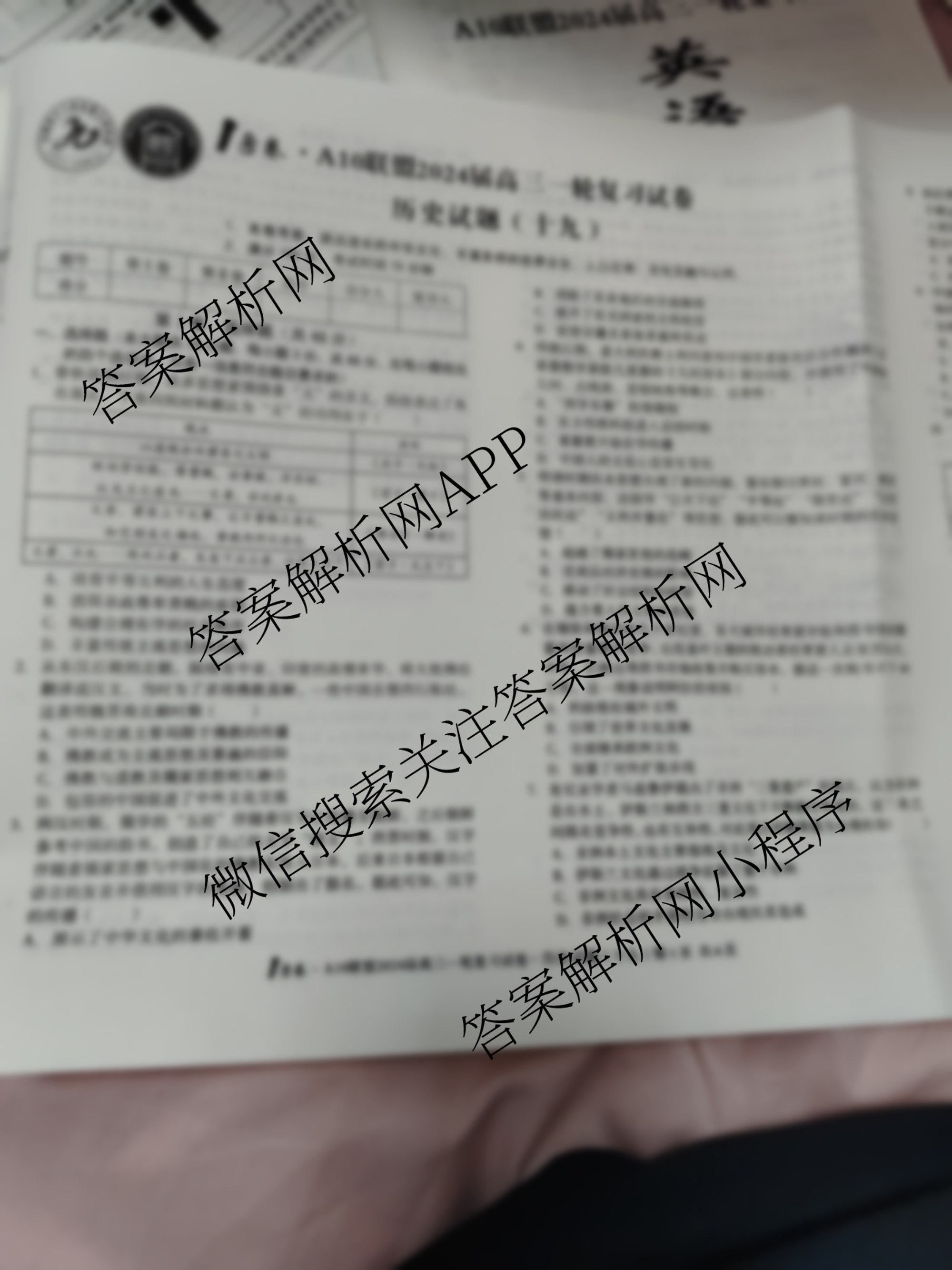 1号卷A10联盟2024届高三一轮复习试卷 历史(十九)19试题